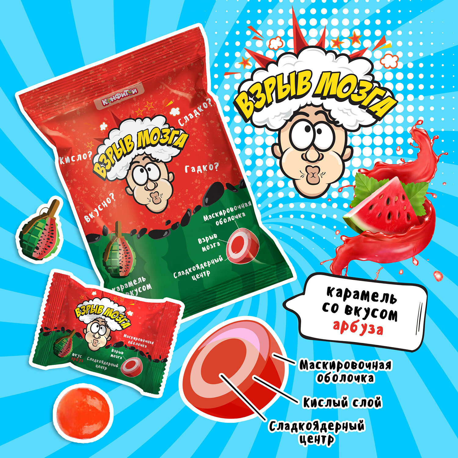 - Карамель "ВЗРЫВ МОЗГА" со вкусом арбуза 15 г, 5 конфет в пакете, КОНФИТОЙ, КТ92714