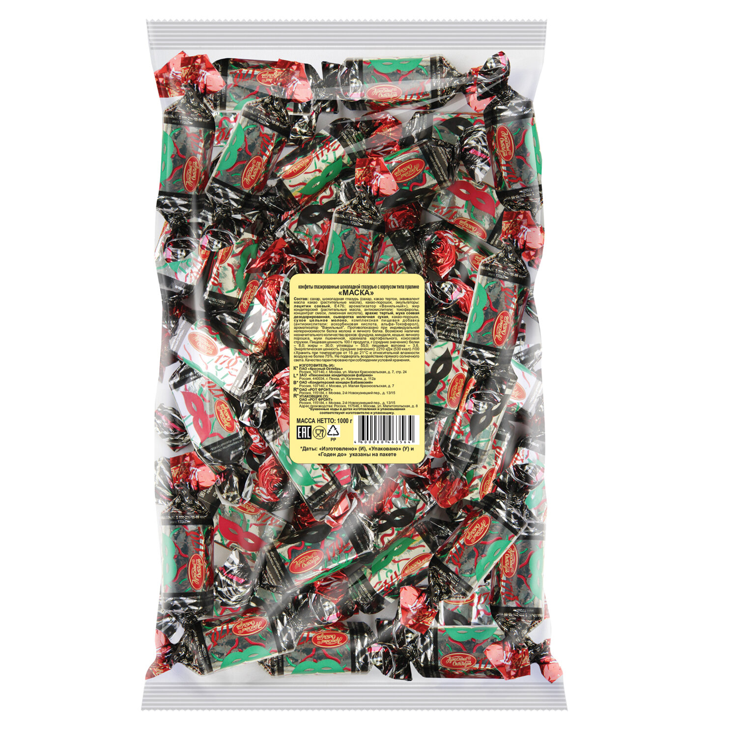 - Конфеты шоколадные КРАСНЫЙ ОКТЯБРЬ "Маска", 1 кг, пакет, РФ14314
