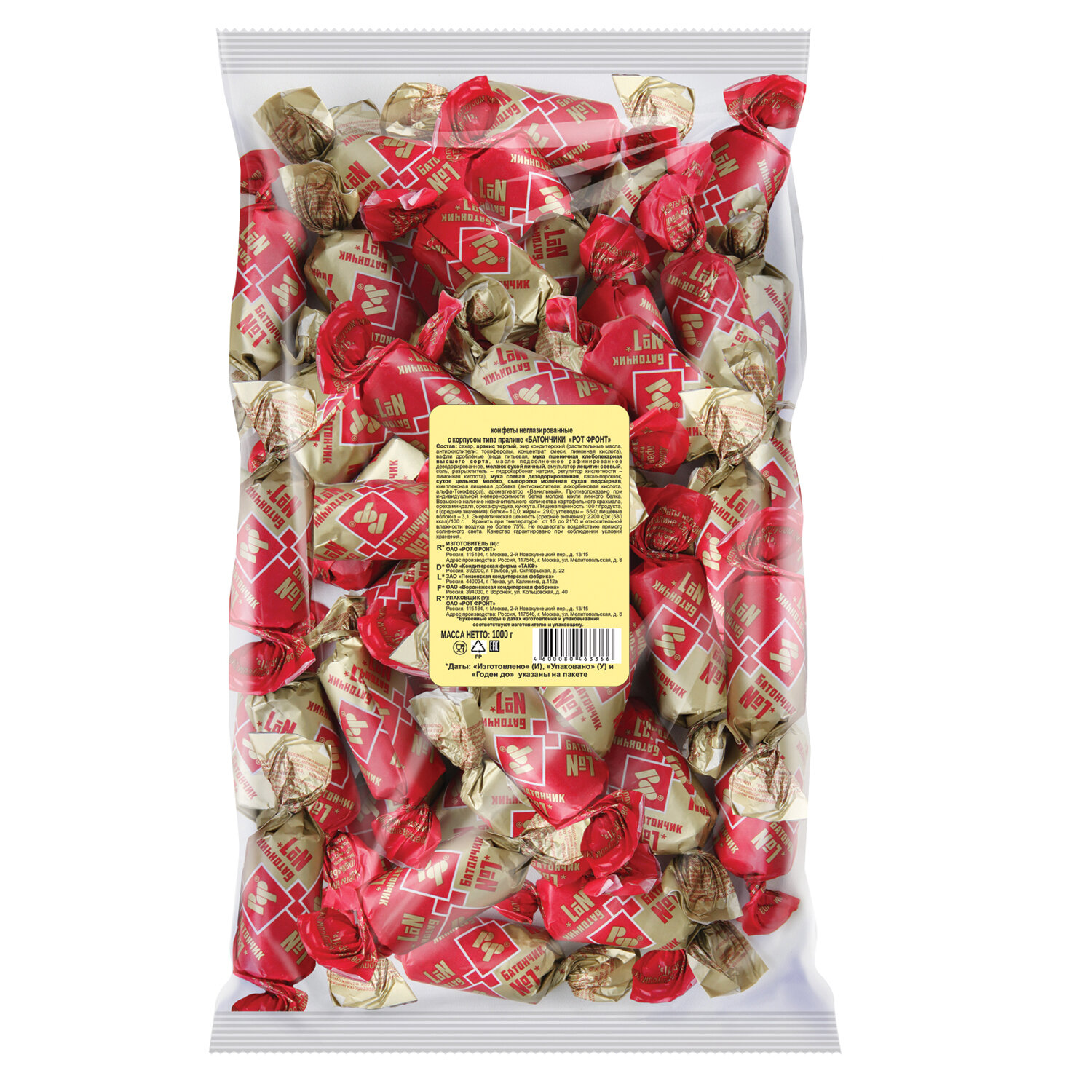 - Конфеты шоколадные РОТ ФРОНТ "Батончики", пралине с дробленными вафлями, 1 кг, пакет, РФ14462