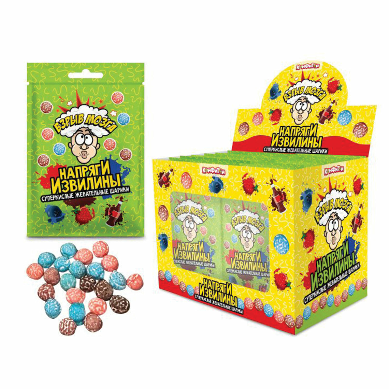 - Конфеты ВЗРЫВ МОЗГА супер кислые "Напряги извилины", жевательные шарики, 12 г, КОНФИТОЙ, КТ94995