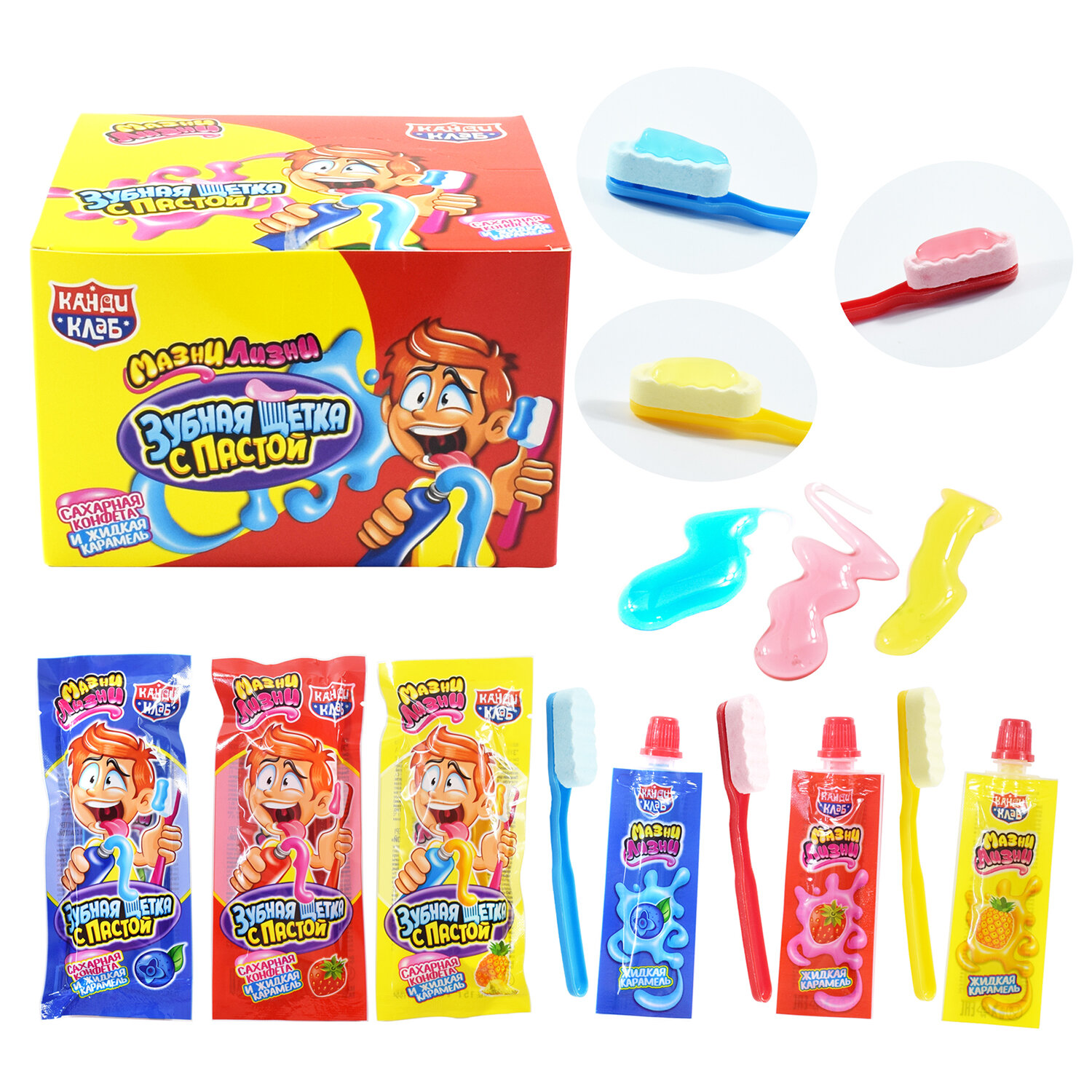 - Сахарная конфета и жидкая карамель "Зубная щетка с пастой", 15 г, КАНДИ КЛАБ, DRG026-2