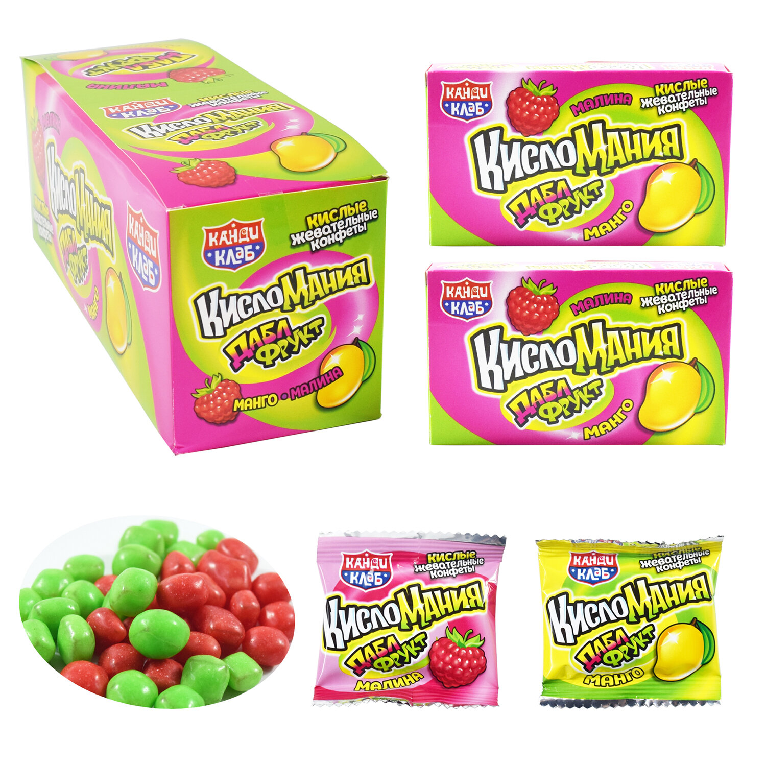 - Жевательные конфеты "Кисломания дабл фрукт" малина и манго, 14 г, КАНДИ КЛАБ, CHW042-3