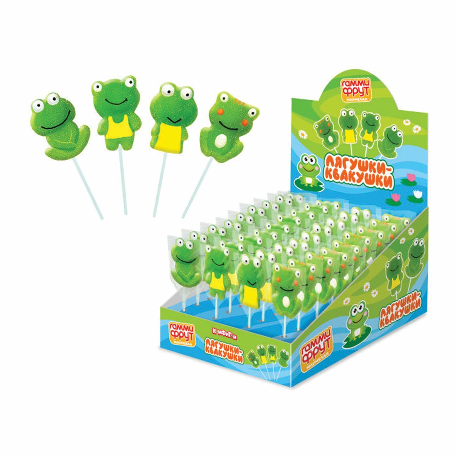 - Мармелад на палочке ГАММИ ФРУТ "Лягушки-Квакушки", 25 г, КОНФИТОЙ, КТ95028