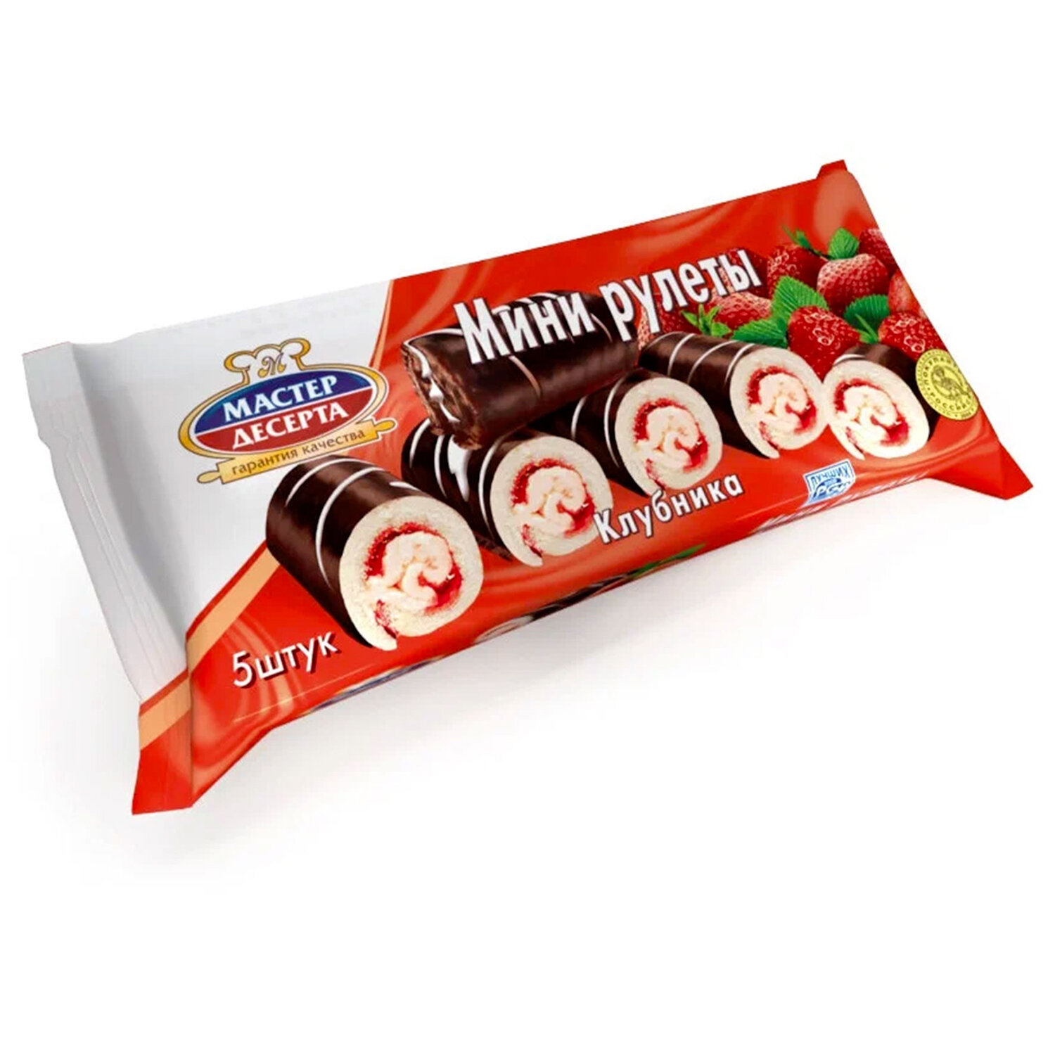 - Мини-рулеты МАСТЕР ДЕСЕРТА глазированные с клубничной начинкой, 175 г, 8114