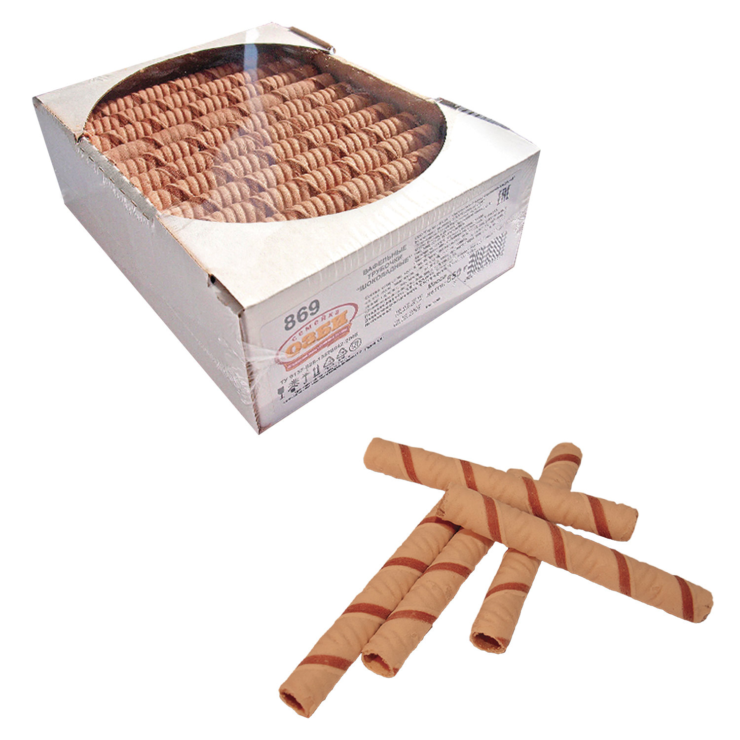 - Вафельные трубочки СЕМЕЙКА ОЗБИ со вкусом шоколада, 650 г, гофрокороб, 869