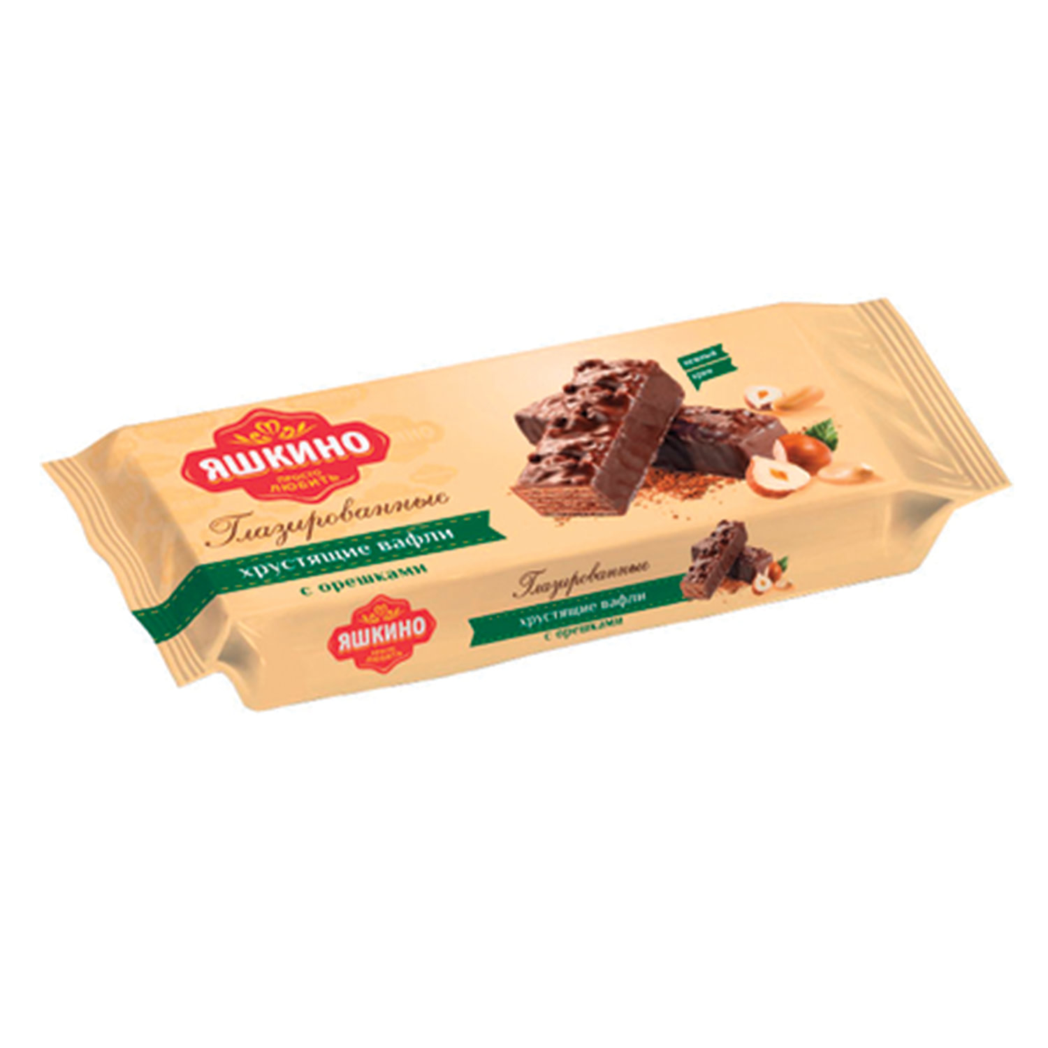 - Вафли ЯШКИНО "Глазированные с орешками" с начинкой из какао и дробленого фундука, 200 г, ЯВ218