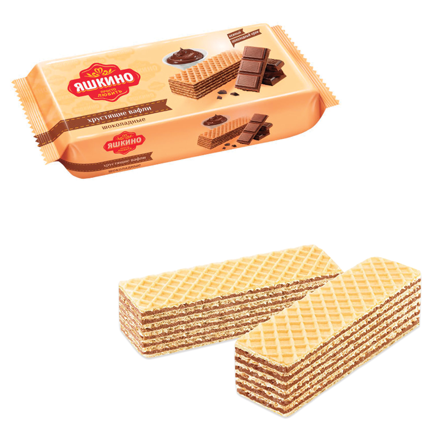 Вафли ЯШКИНО "Шоколадные" - семислойные вафли с шоколадной начинкой. Вафли ЯШКИНО "Шоколадные" с шоколадной начинкой, 300 г, ЯВ157