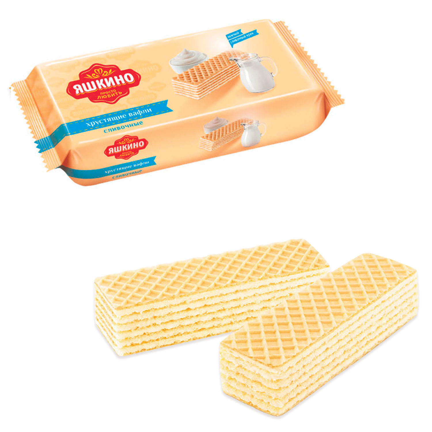 Вафли ЯШКИНО "Сливочные" - семислойные вафли с пломбирно-сливочной начинкой. Вафли ЯШКИНО "Сливочные" с пломбирно-сливочной начинкой, 300 г, ЯВ166
