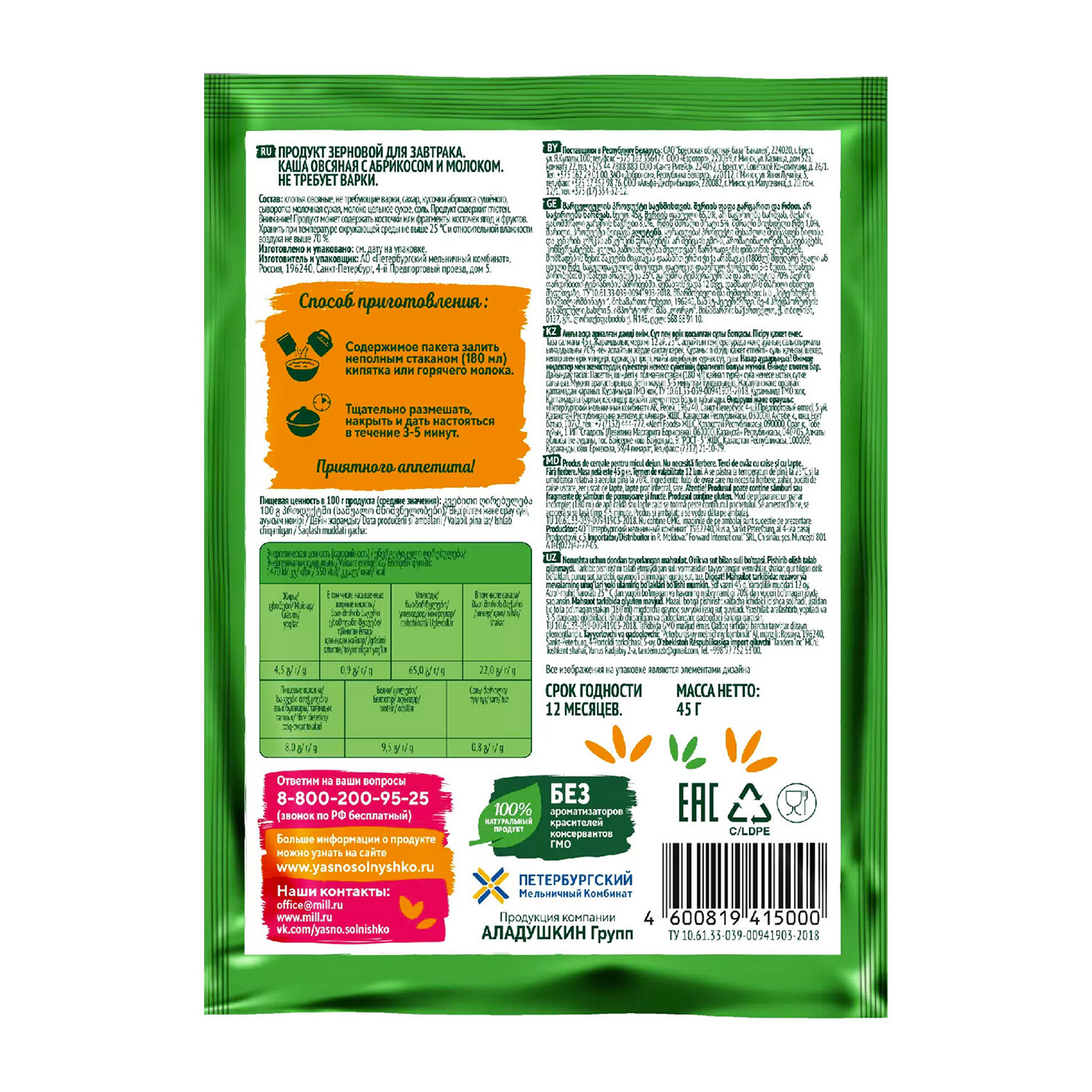 - Каша овсяная ЯСНО СОЛНЫШКО с абрикосом в шоубоксе, 15 шт. по 45 г, 24347