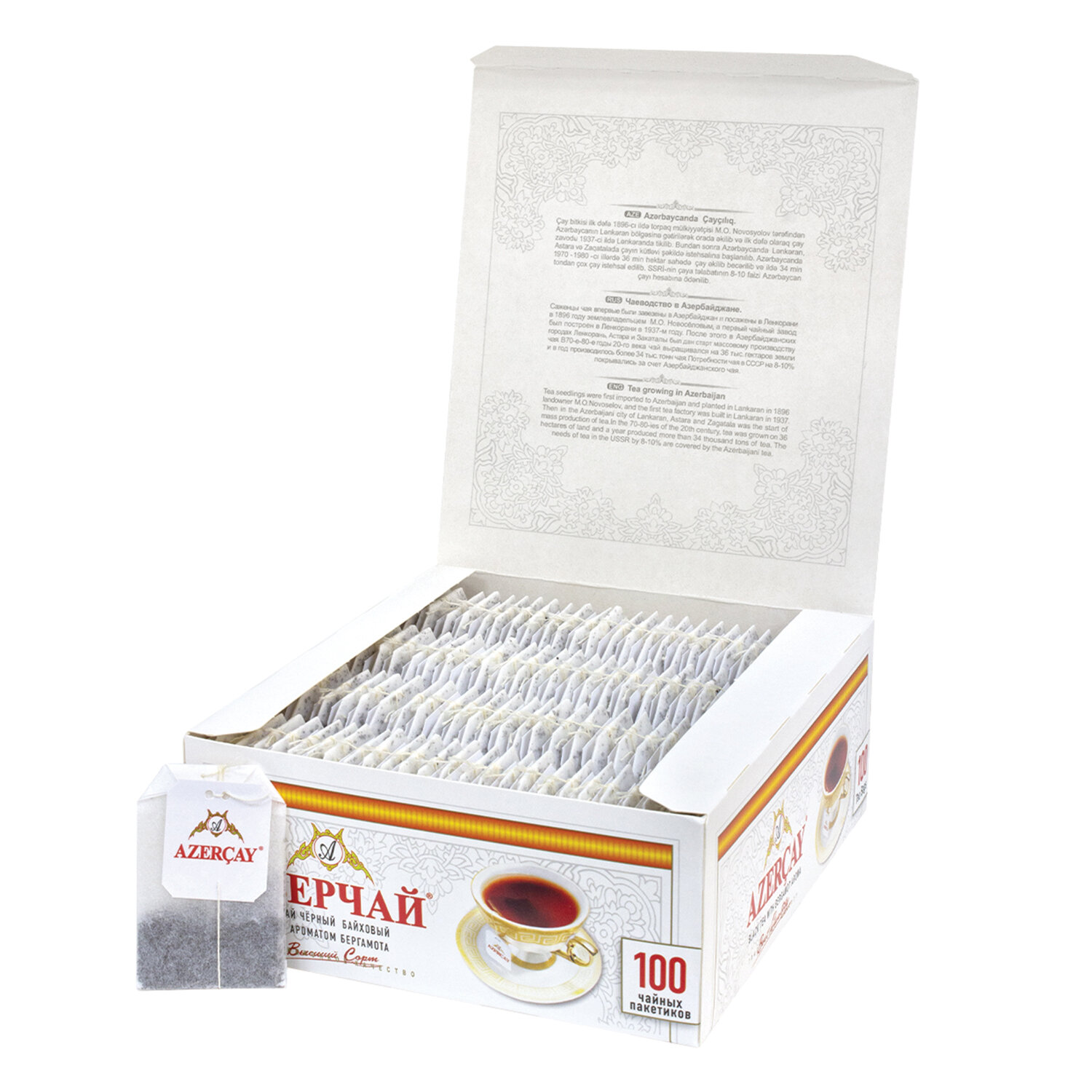 - Чай АЗЕРЧАЙ черный с бергамотом, 100 пакетиков по 2 г, 419830
