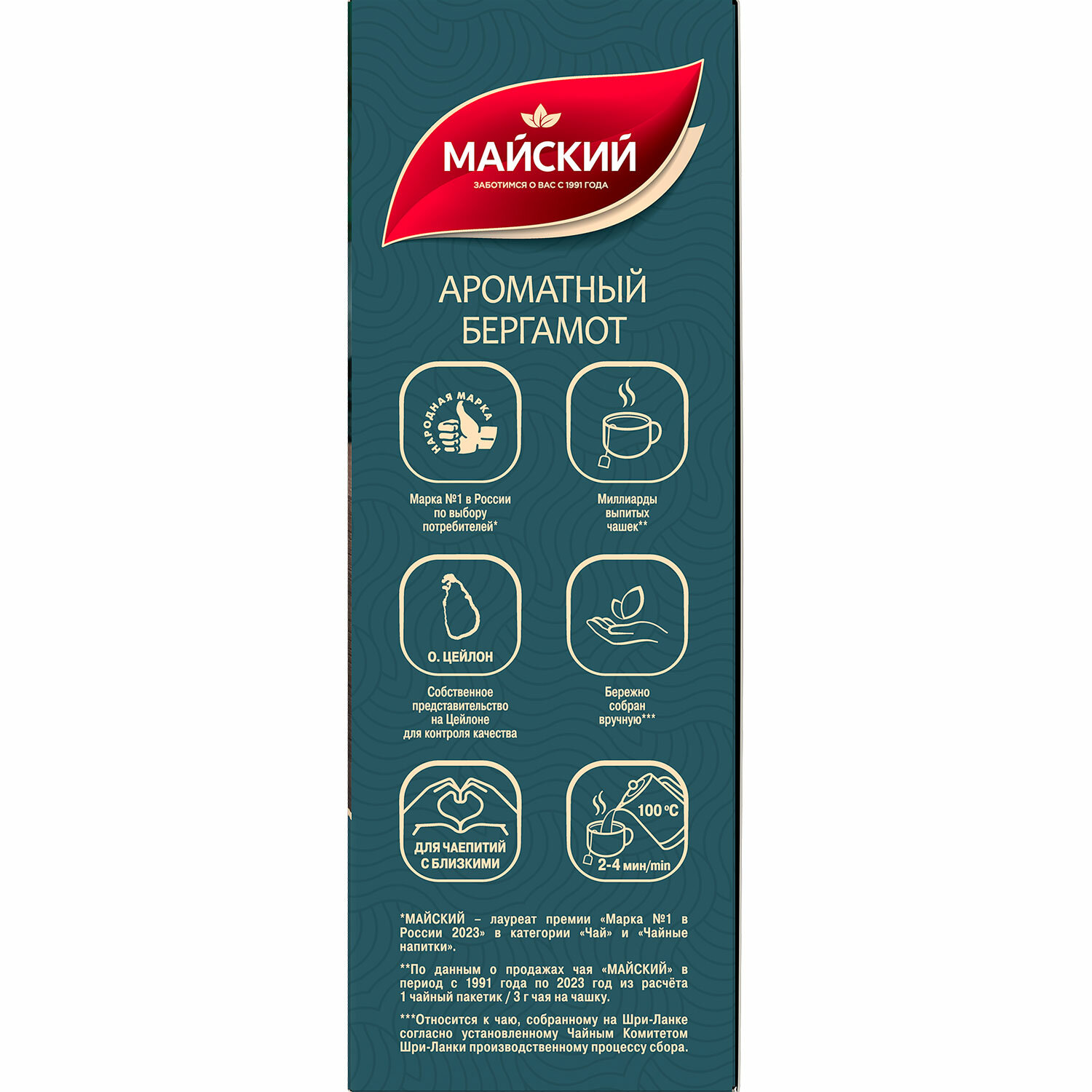 - Чай МАЙСКИЙ "Ароматный бергамот" черный цейлонский байховый, 100 пакетиков по 1,5 г, 102627