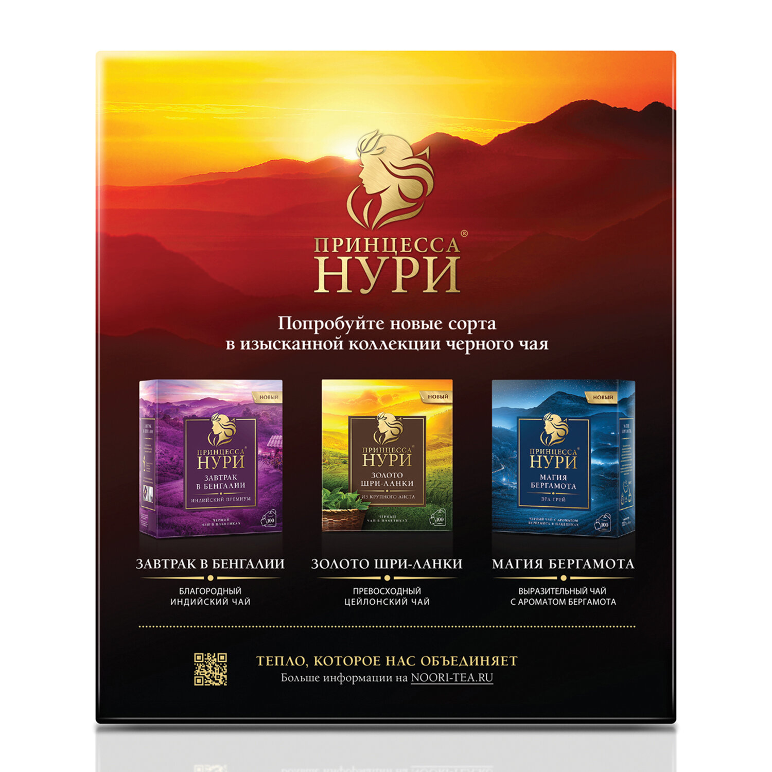 Чай ПРИНЦЕССА НУРИ "Высокогорный" черный, 100 пакетиков по 2 г, 0201-18-А6