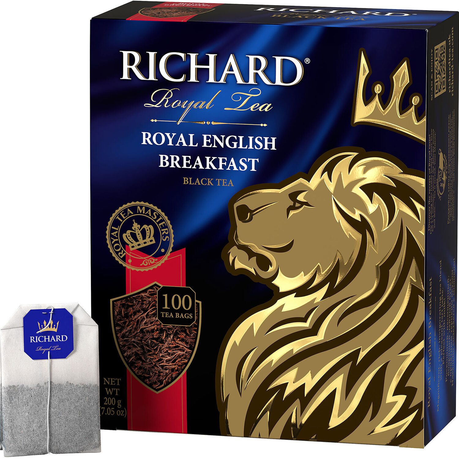 - Чай RICHARD "Royal English Breakfast" черный, 100 пакетиков по 2 г, 100270