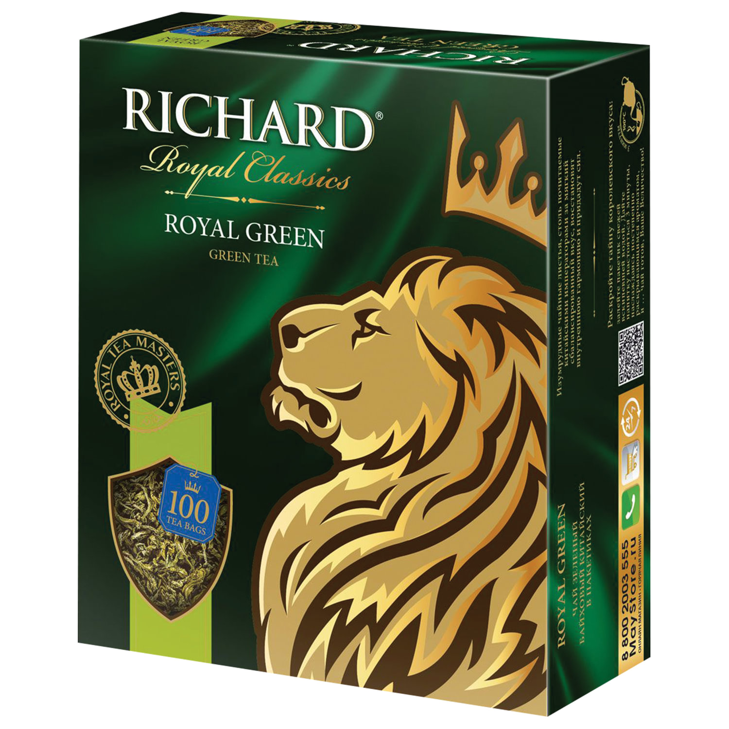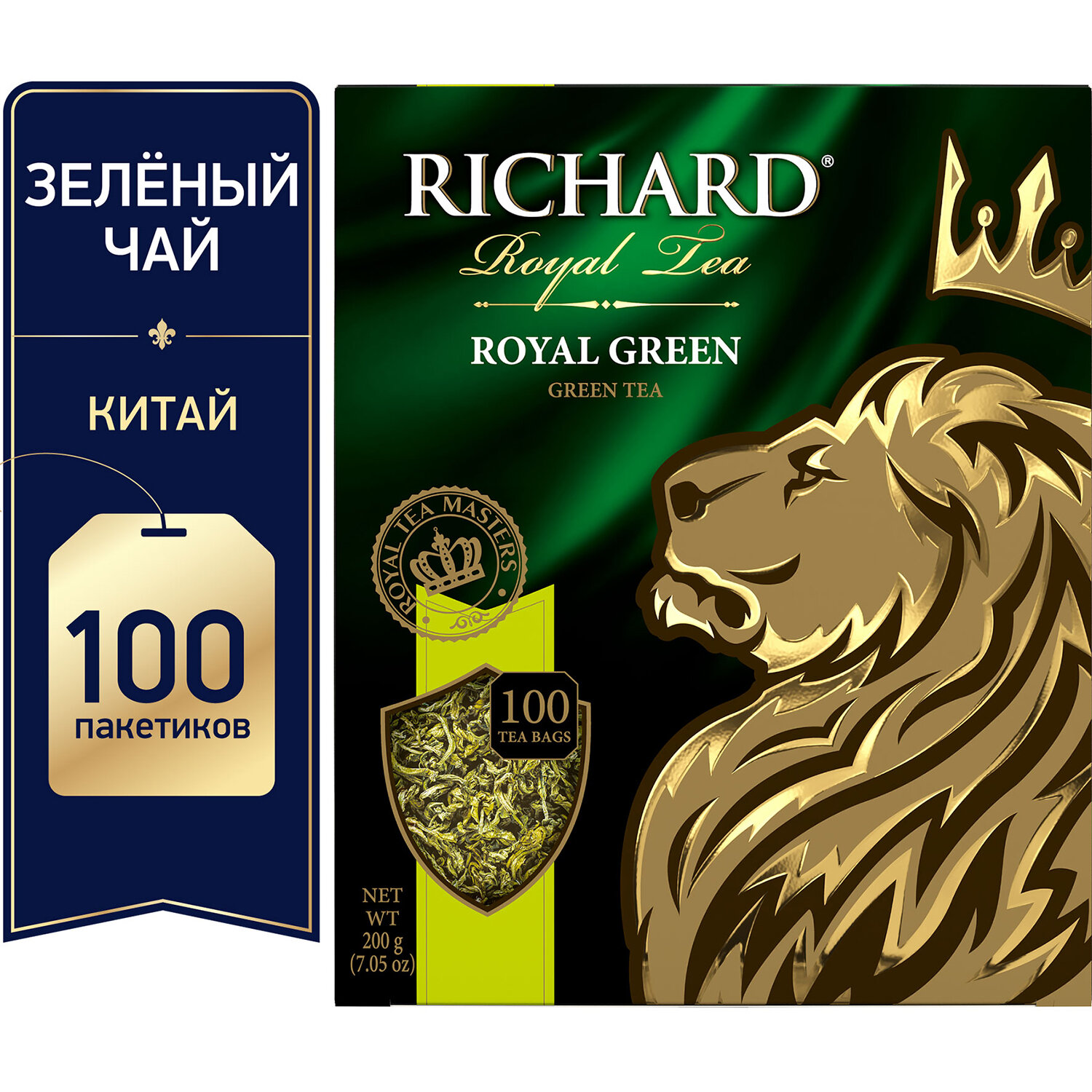 - Чай RICHARD "Royal Green" зеленый, 100 пакетиков по 2 г, 610150
