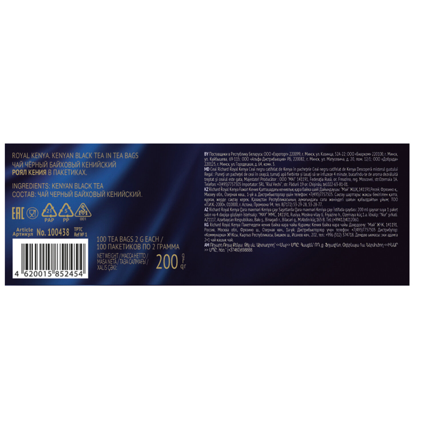 - Чай RICHARD "Royal Kenya" черный кенийский, 100 пакетиков по 2 г, 100438
