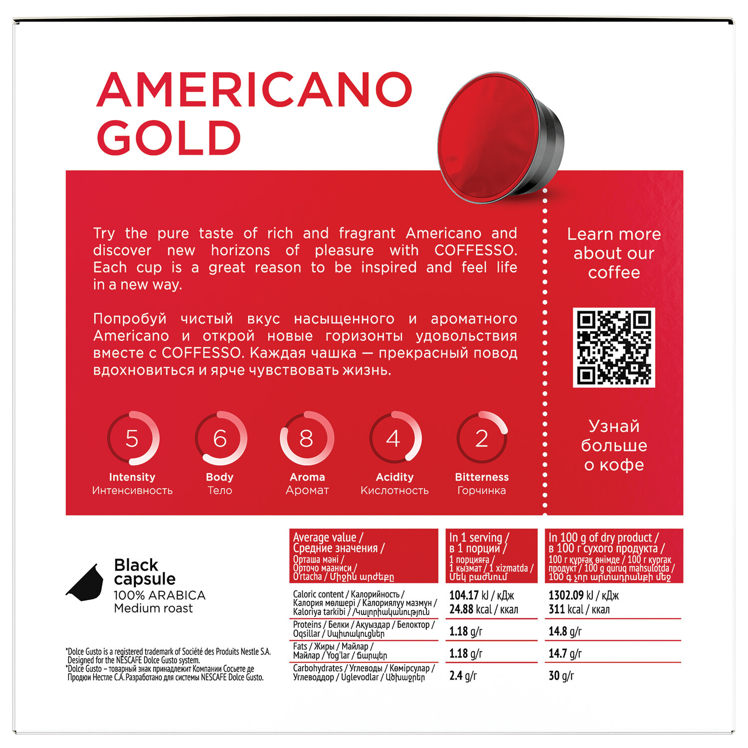 - Кофе в капсулах COFFESSO "Americano Gold" для кофемашин Dolce Gusto, 16 порций, 102152
