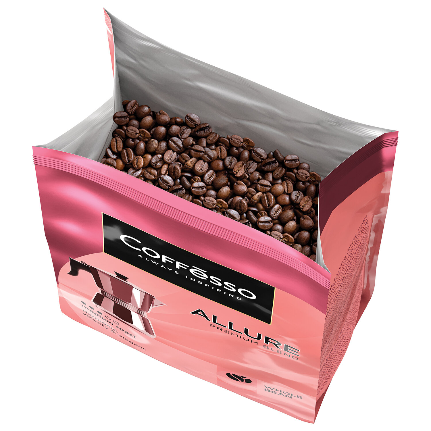 Состав: смесь арабики и робусты. Кофе в зернах COFFESSO "Allure", 1 кг, 102487