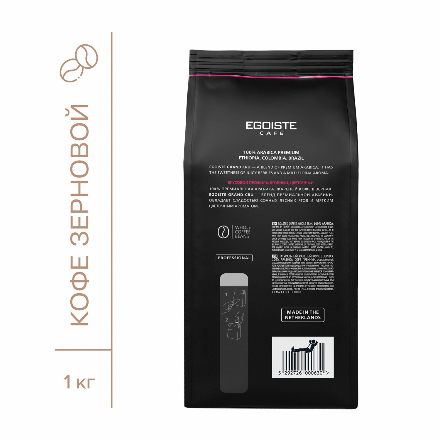 Состав: 100% арабика. Кофе в зернах EGOISTE "Grand Cru" 1 кг, арабика 100%, НИДЕРЛАНДЫ, EG10004023
