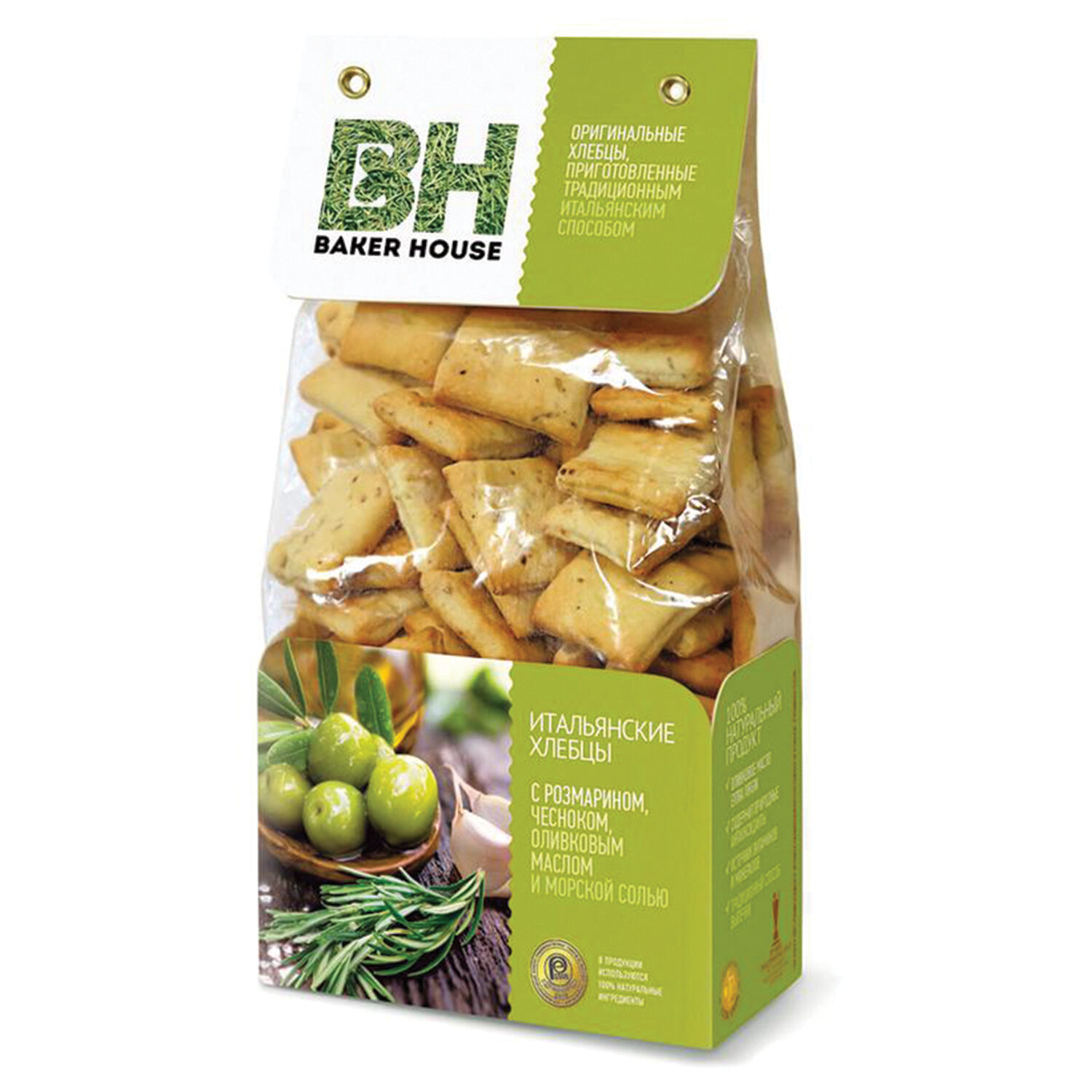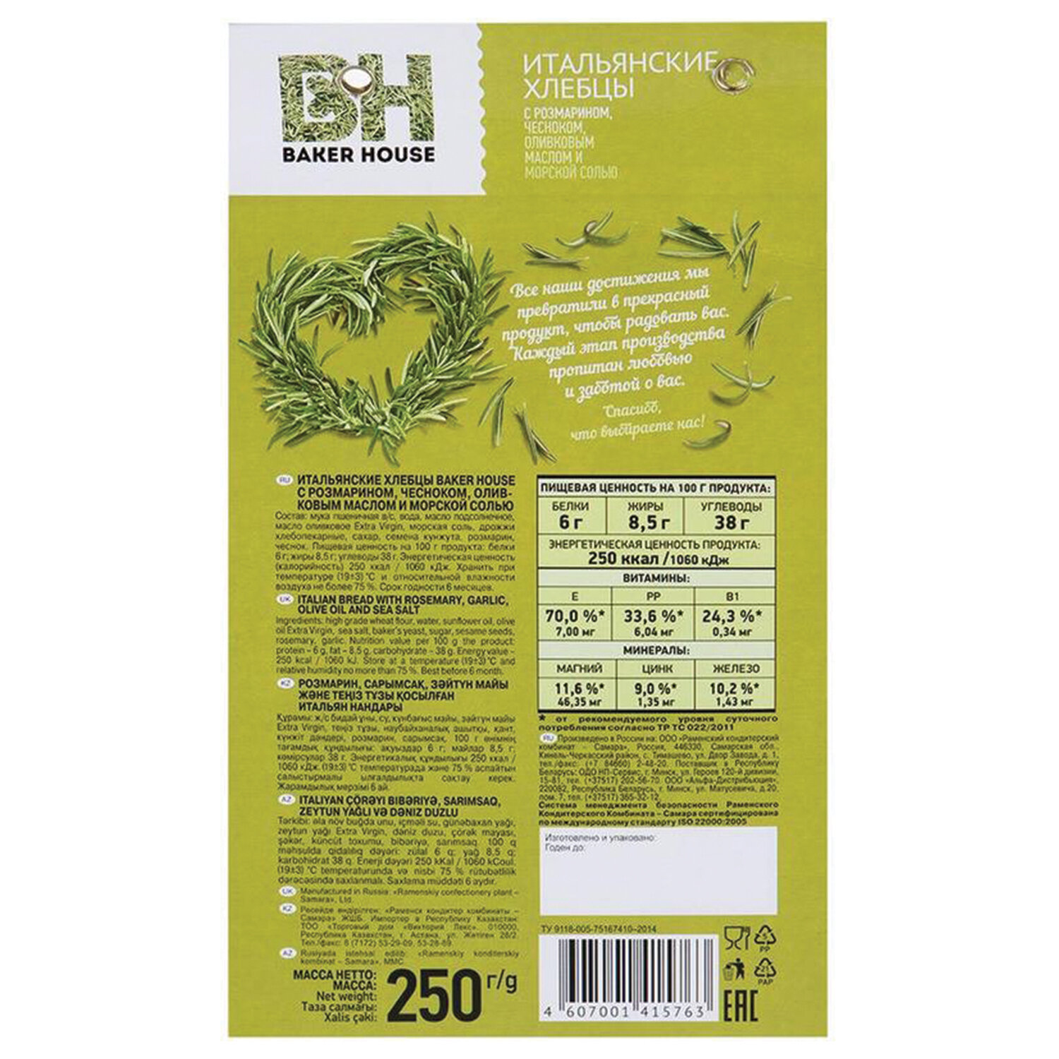 - Хлебцы BAKER HOUSE "Итальянские", с розмарином и чесноком, 250 г, пакет, 5763
