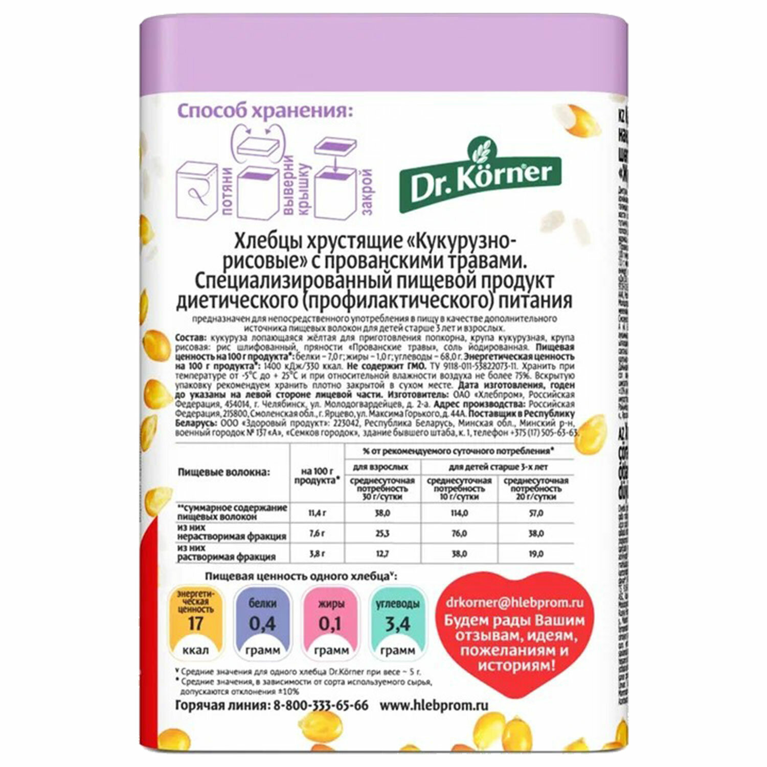 - Хлебцы DR.KORNER "Кукурузно-рисовые" с прованскими травами, хрустящие, 100 г, 601090057