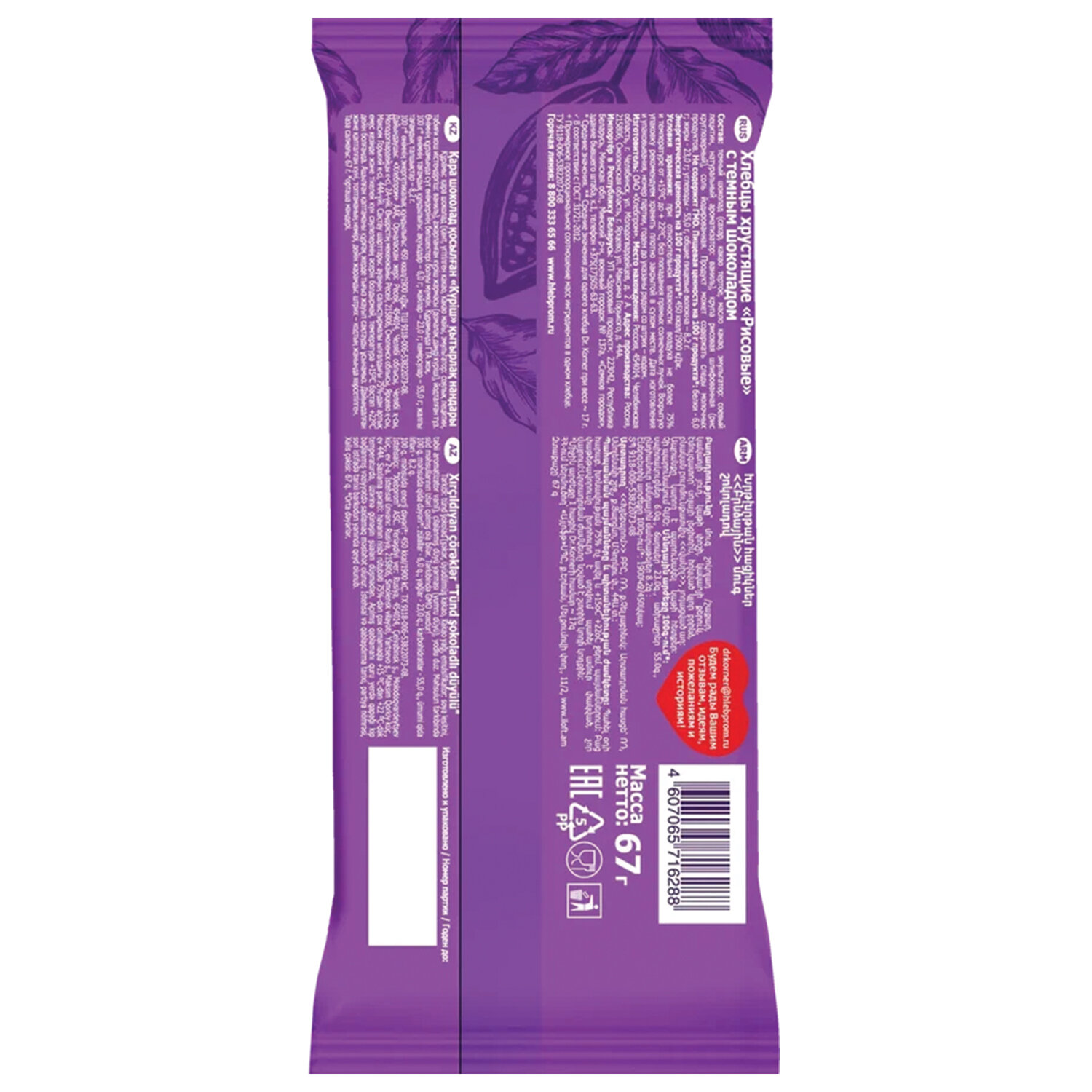 - Хлебцы DR.KORNER "Рисовые" в темном шоколаде, хрустящие, 67 г, пакет, 601090213