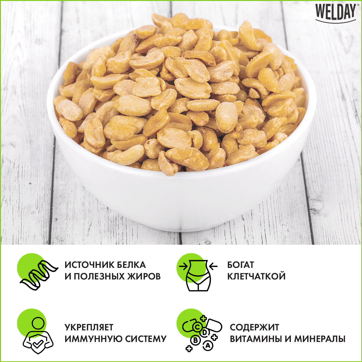 - Арахис жареный соленый WELDAY (ВЭЛДЭЙ) 1 кг, 622468