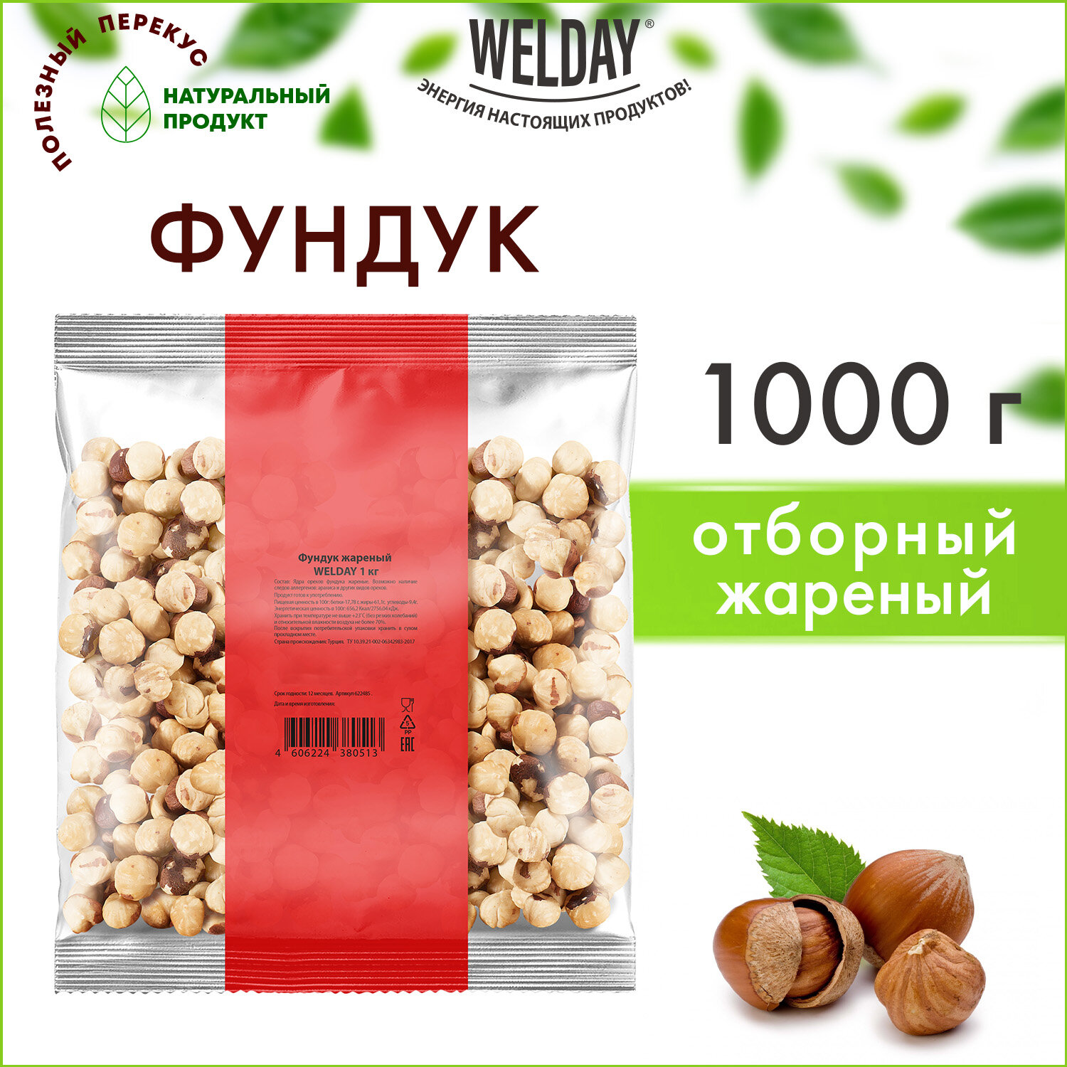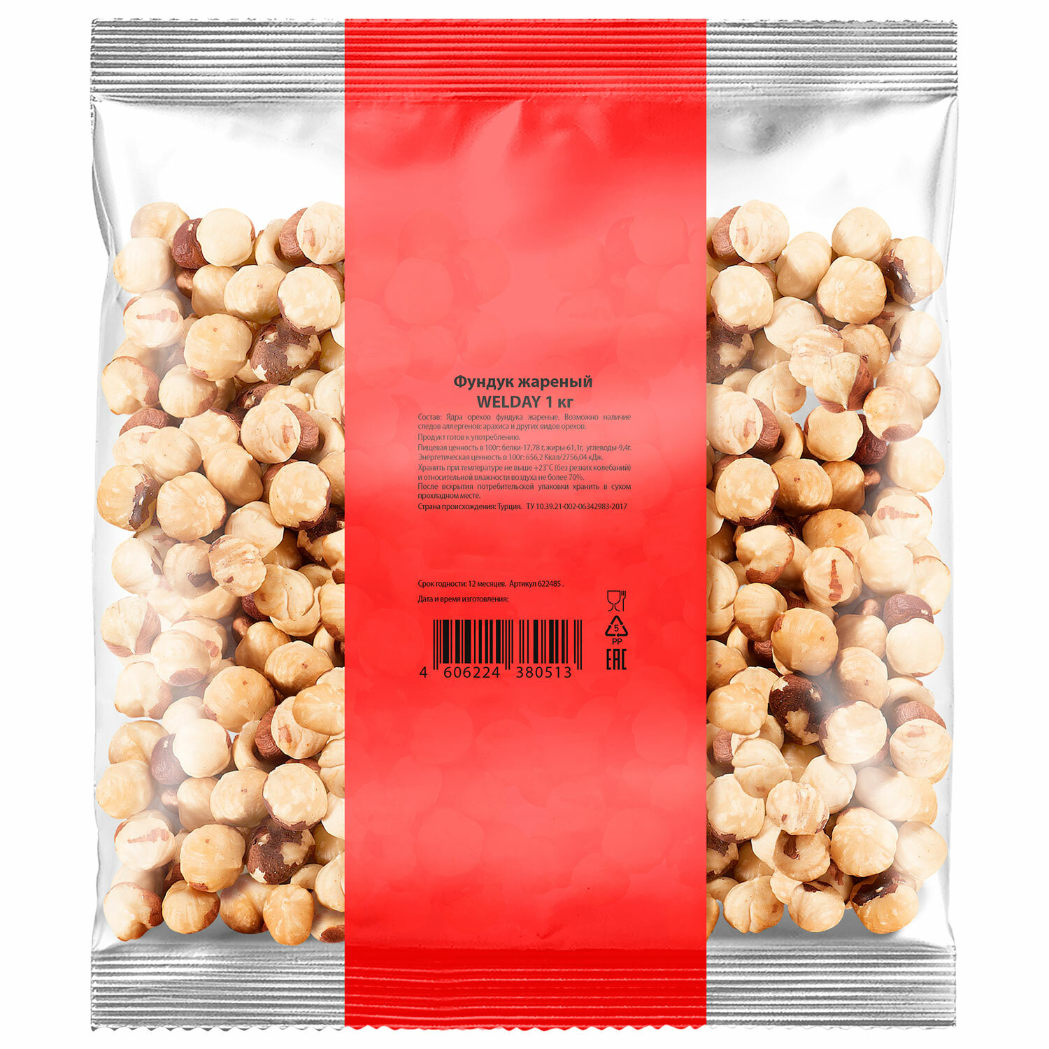 Срок годности – 12 месяцев. Фундук жареный WELDAY (ВЭЛДЭЙ) 1 кг, 622485