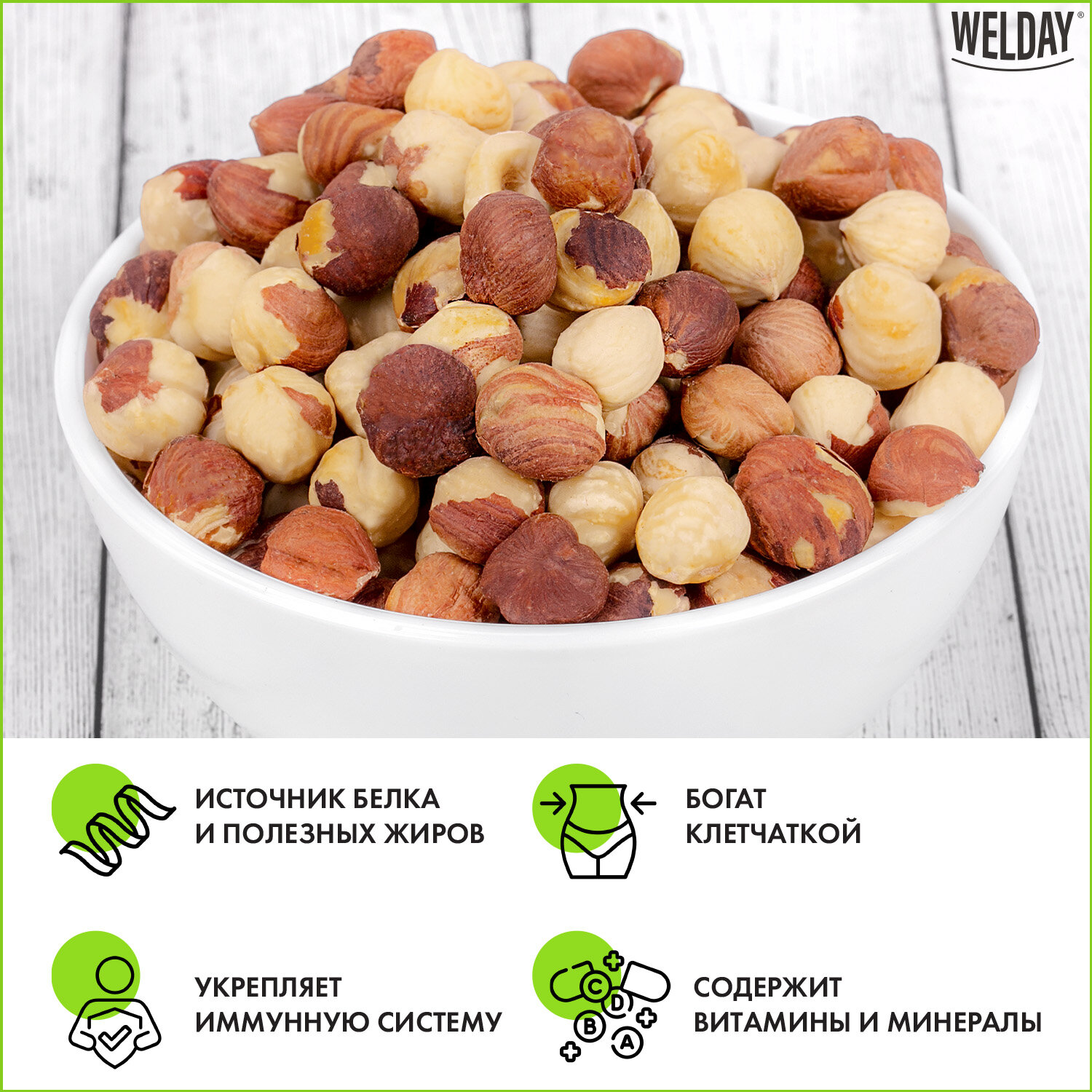- Фундук жареный WELDAY (ВЭЛДЭЙ) 1 кг, 622485