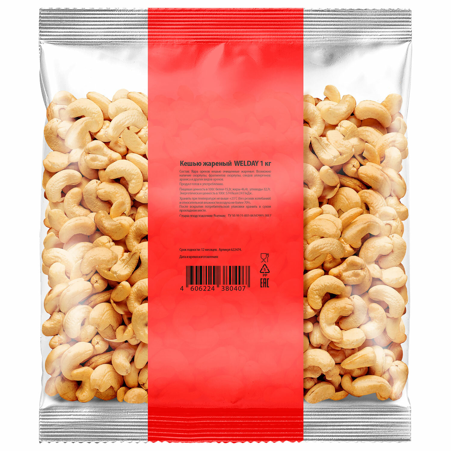 Срок годности: 12 месяцев. Кешью жареный WELDAY (ВЭЛДЭЙ) 1 кг, 622474