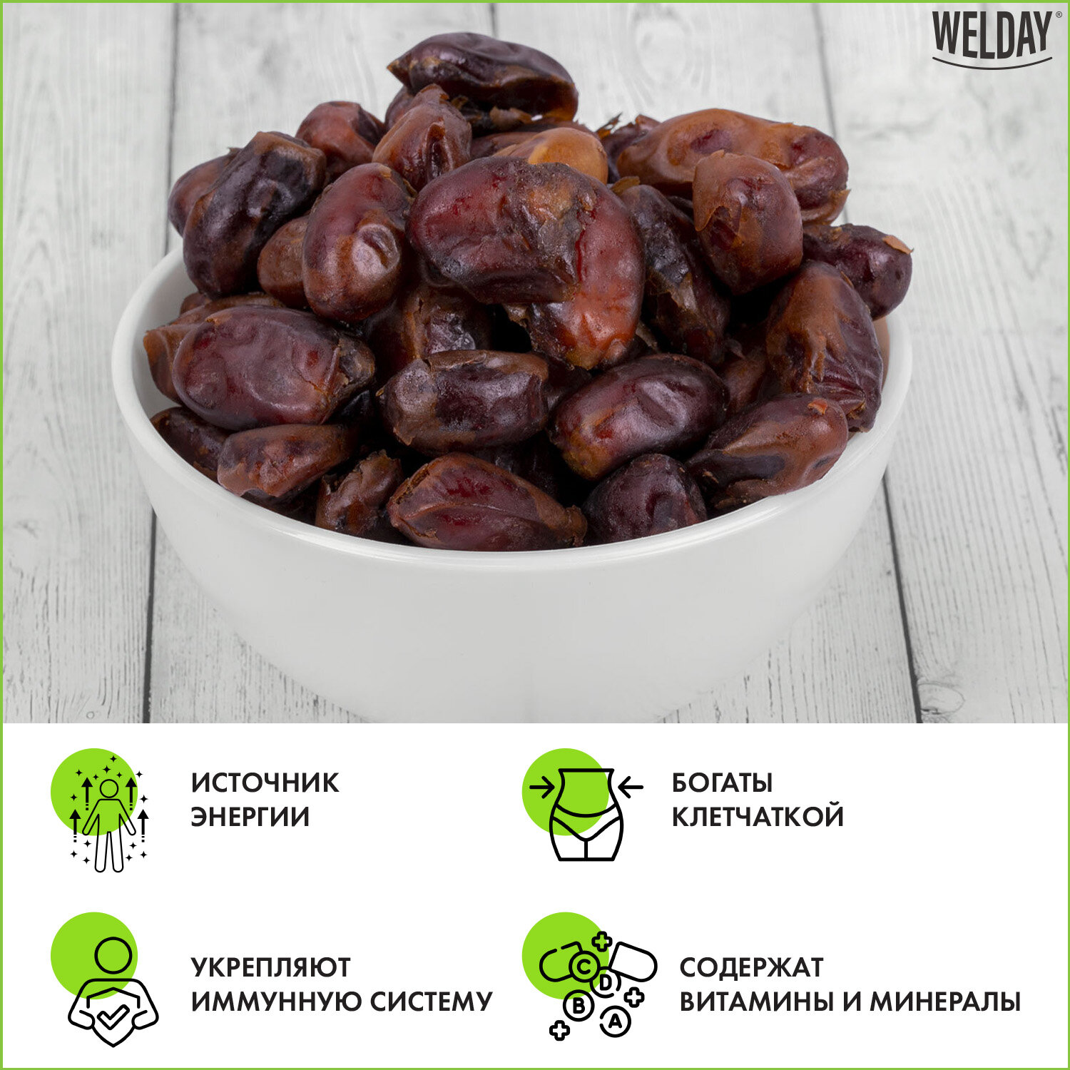 - Финики сушеные Иранские с косточкой WELDAY (ВЭЛДЭЙ) 1 кг, 622483