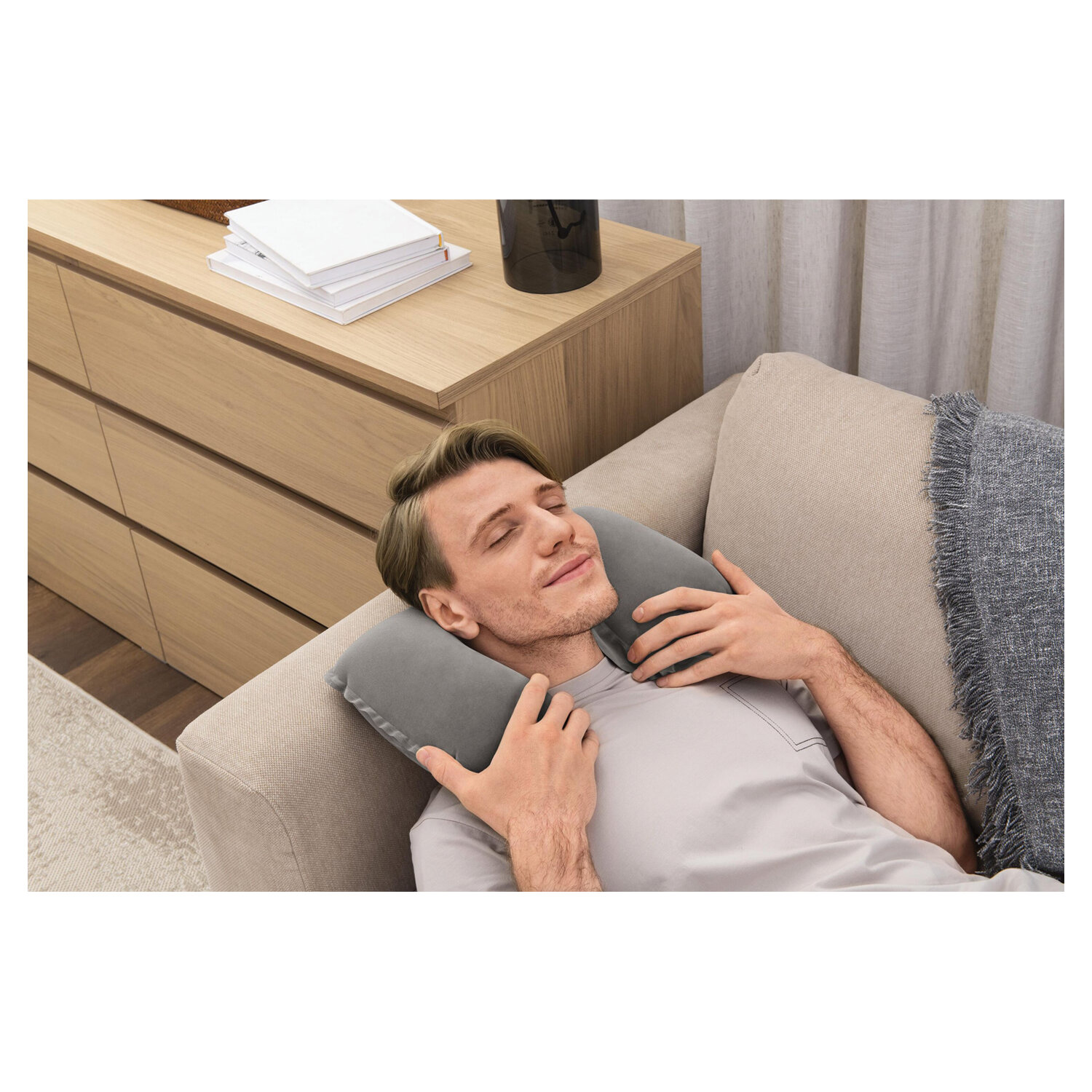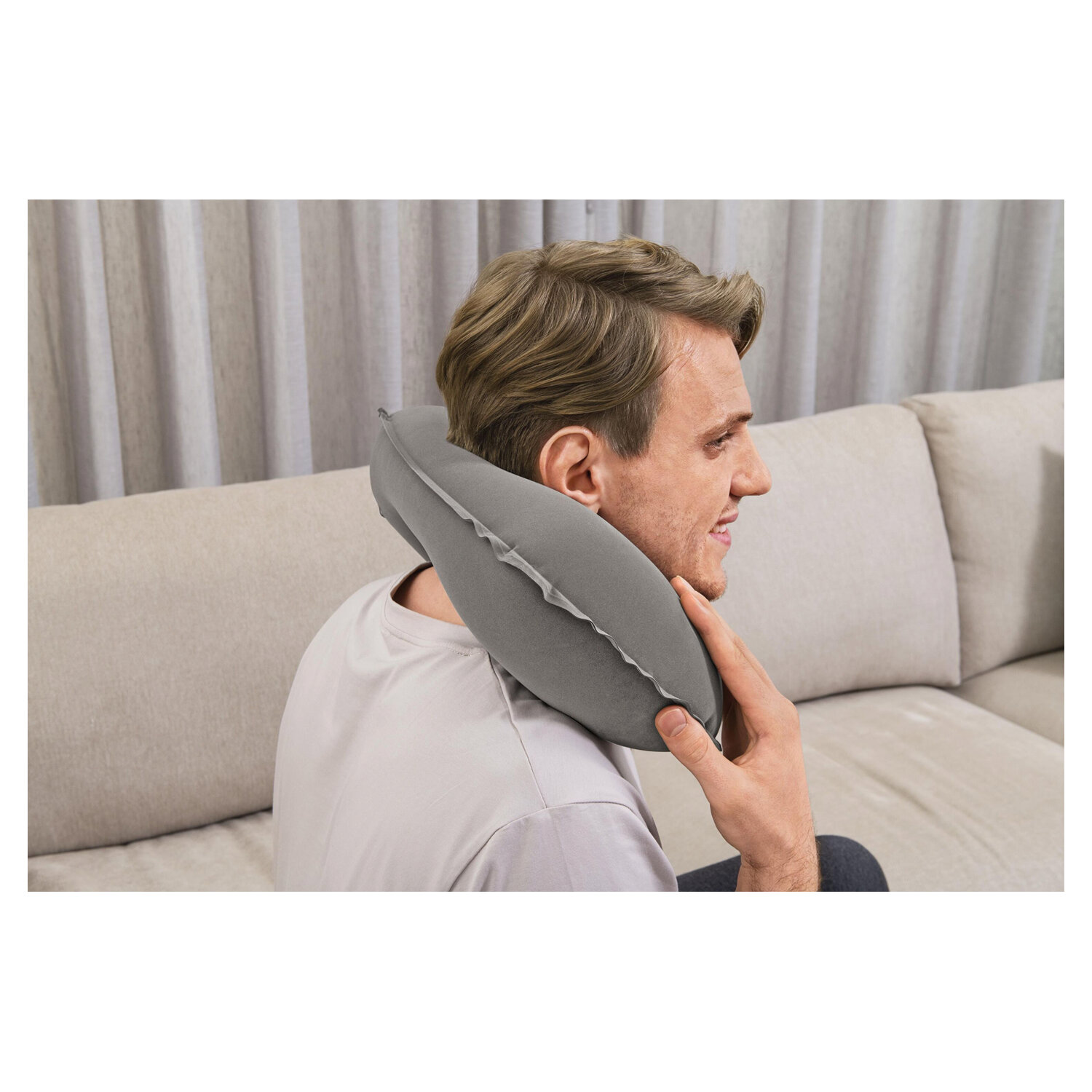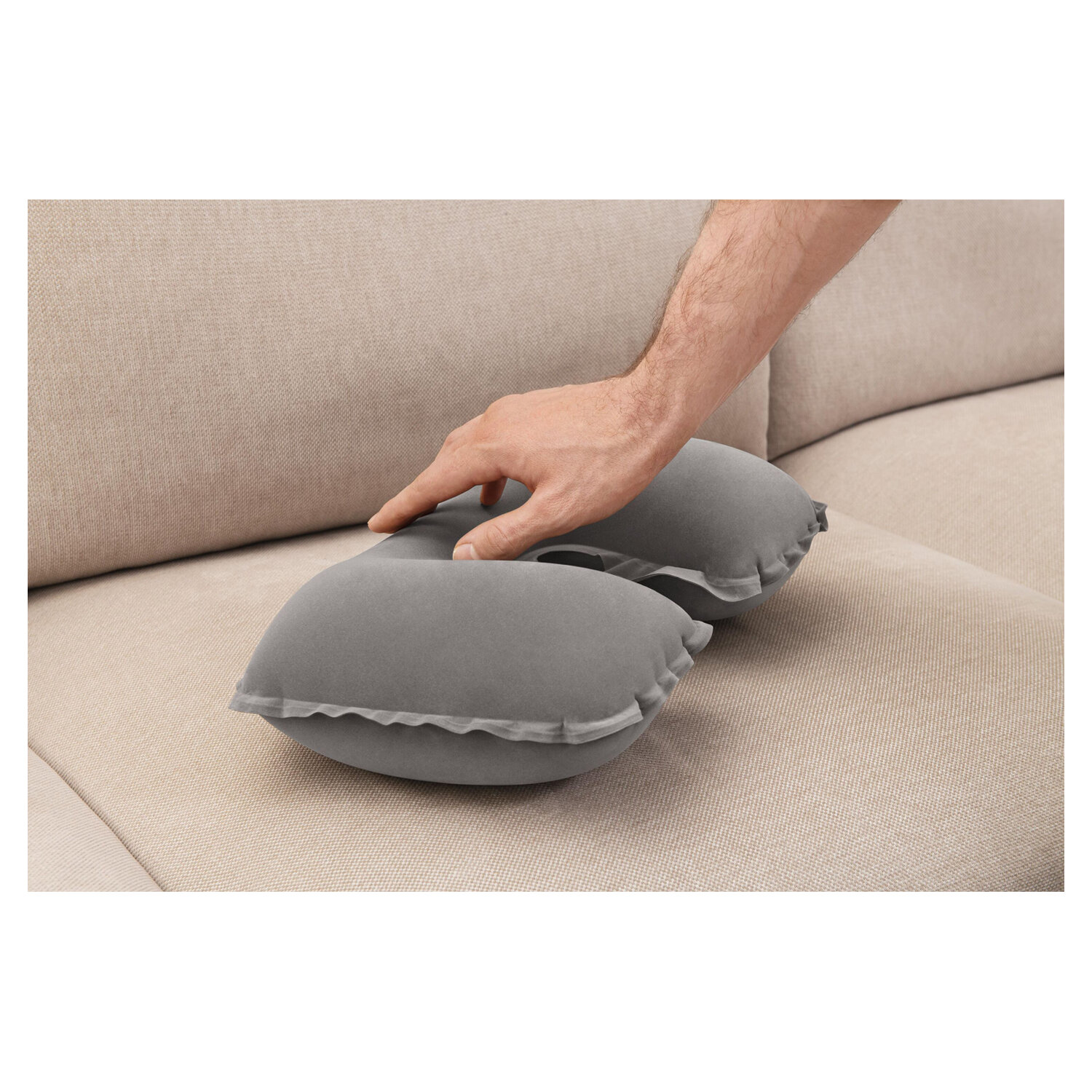 Подушка флокирована, приятная на ощупь, не скользит, не прилипает к коже, не впитывает влагу, легко чистится без применения химии. Надувная подушка разработана таким образом, что делает отдых максимально комфортным, и особенно пригодится людям, которые вынуждены проводить много времени в дороге.
