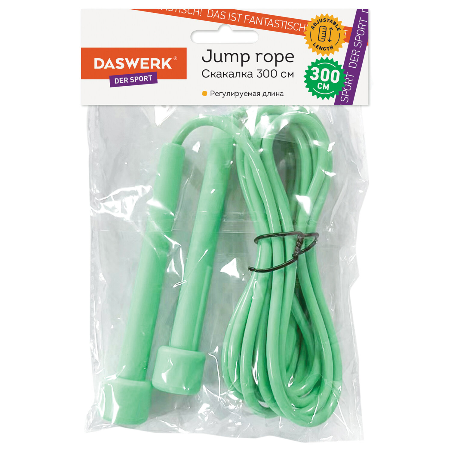 Скакалка спортивная 300 см, ПВХ, регулируемая длина, бирюзовая, DASWERK, 680028