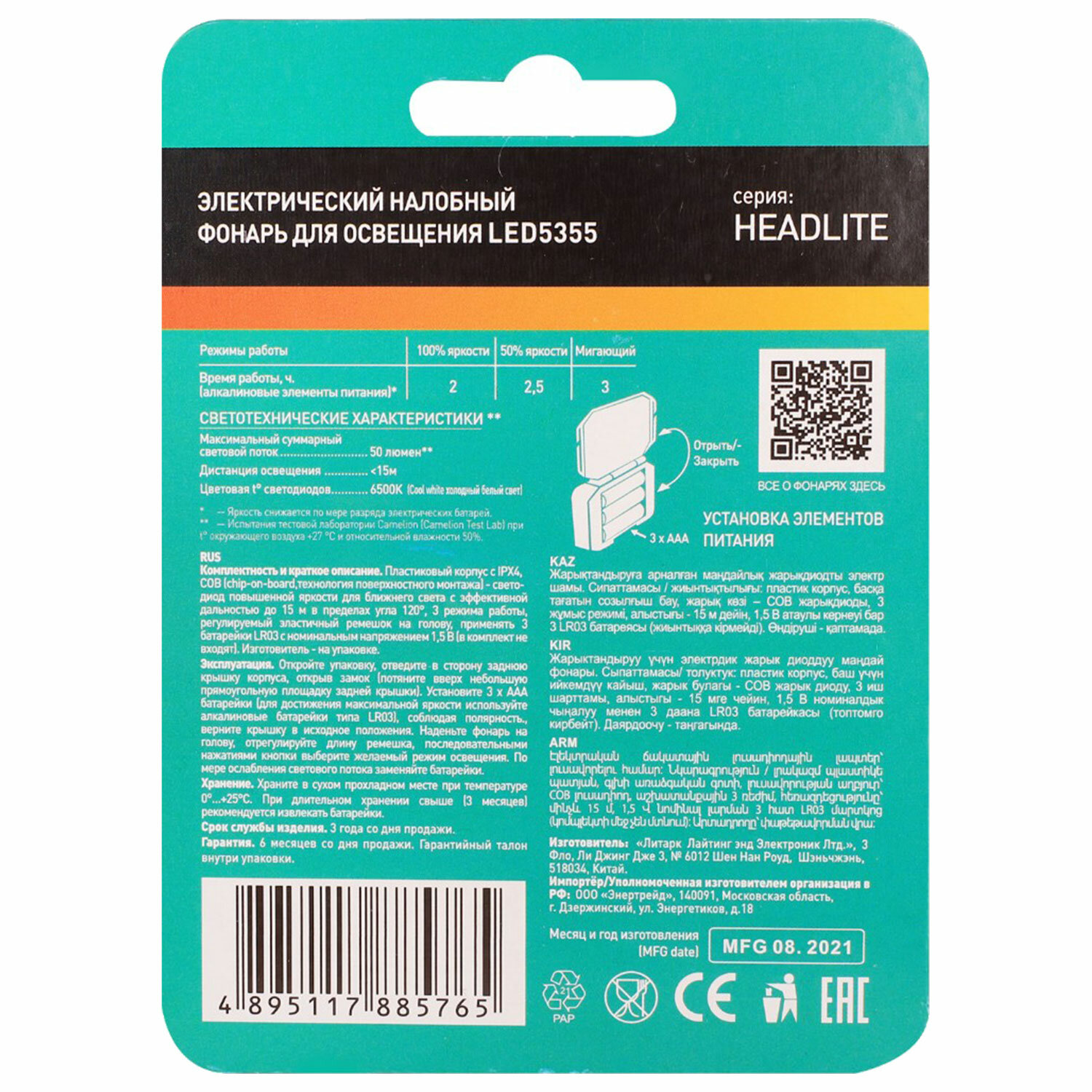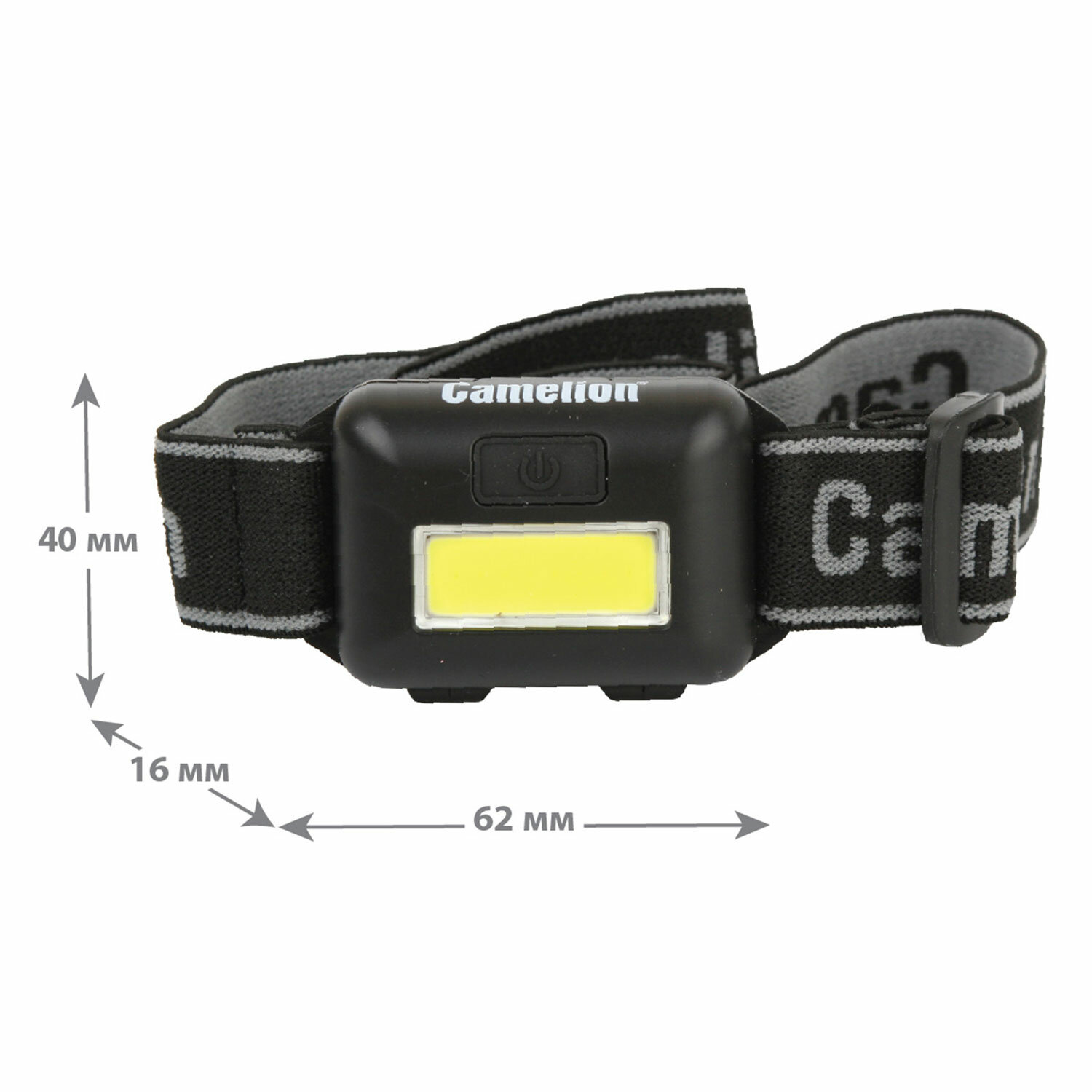 Вес с упаковкой: 0,035 кг. Фонарь налобный CAMELION 1 Вт COB, 3 режима, питание 3хAAА (не в комплекте), LED5355