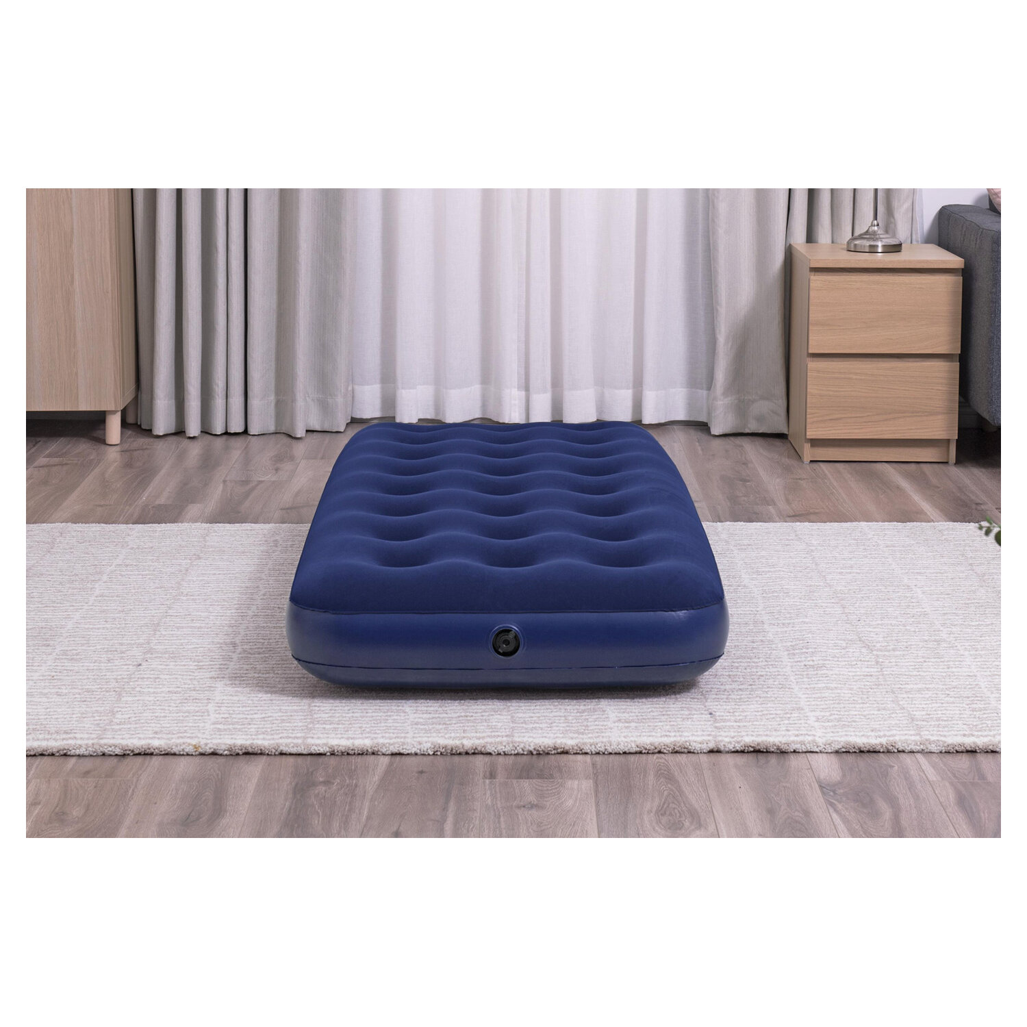 Одноместный надувной матрас серии Flocked Air Bed изготовлен по технологии COIL BEAM CONSTRUCTION. Внутренняя конструкция матраса с усиленными перегородками в виде стаканов имеет повышенную выносливость и жесткость. Матрас оснащен универсальным клапаном 2 в 1 для накачивания и сдувания – подойдет любой тип насоса: ручной, ножной, электрический. В комплект насос не входит, приобретается отдельно.