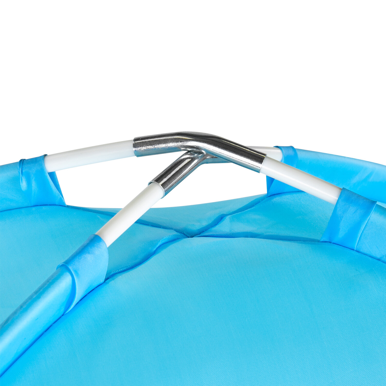 Размеры палатки в собранном виде – 100х130х130 см. Красочный дизайн в спокойных тонах не останется без внимания. Палатка комплектуется 5 пластиковыми мячикам с липучками для веселых игр на развитие крупной моторики: t;бросаем мячики в фетровые звезды, самый меткий побеждаетt;. Дверь палатки внизу фиксируется липучкой, а при необходимости ее можно поднять, свернуть в рулон в верхней части и зафиксировать завязкой. У палатки есть дверь и 3 окна, оснащенные москитной сеткой, поэтому в детском домике всегда будет свежий воздух и защита от насекомых и солнца. На текстильном прочном дне внутри палатки удобно сидеть.