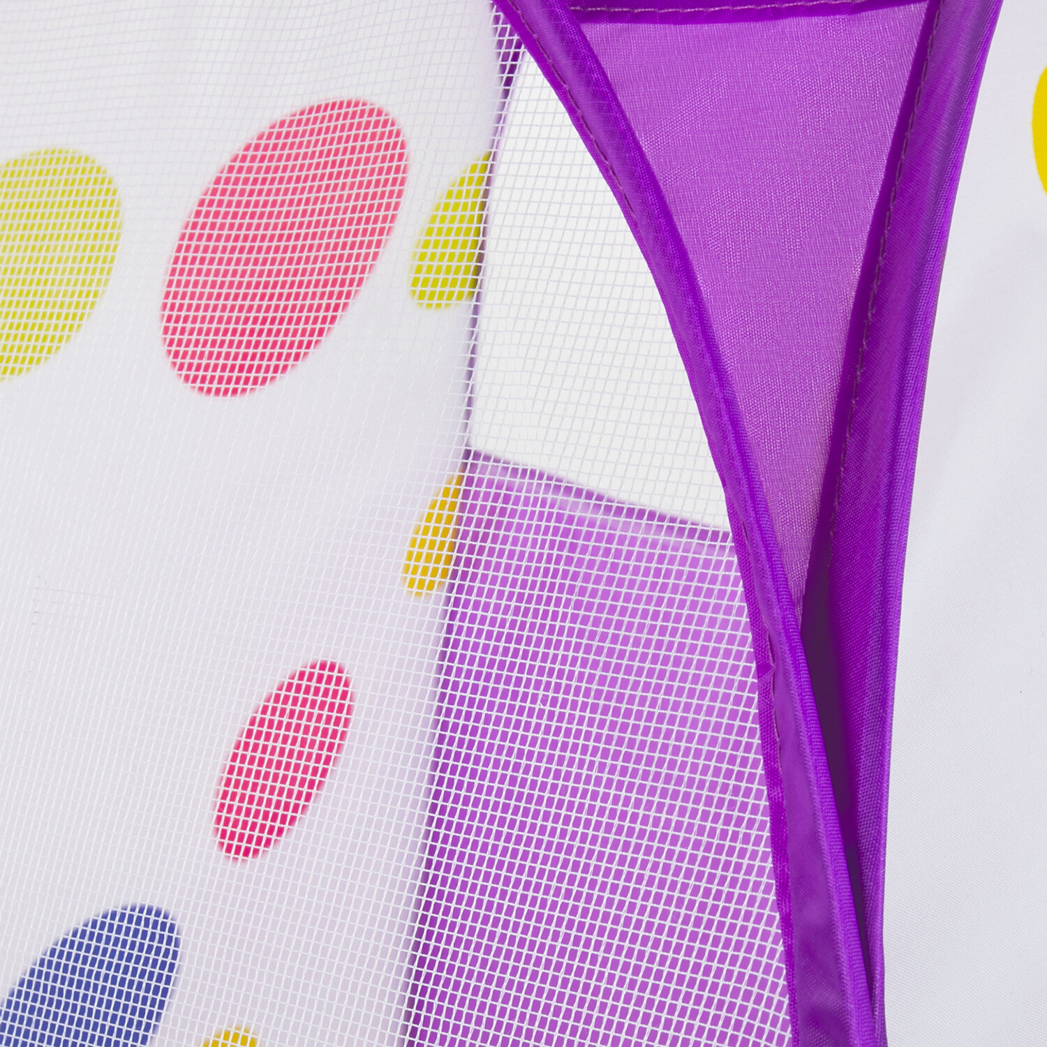 Элементы можно использовать как вместе, так и отдельно друг от друга – они фиксируются между собой специальными крепежами-пуговицами. Яркий и красочный дизайн, подходящий как девочкам, так и мальчикам, не останется без внимания. Каждый элемент набора оснащен москитной сеткой, благодаря чему внутри всегда будет свежий воздух и защита от солнца. На текстильном прочном дне внутри палатки удобно сидеть.