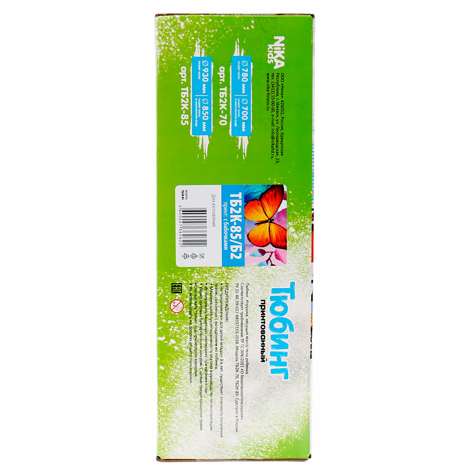 - Тюбинг-ватрушка, 85 см, с принтом, "Бабочки", верх оксфорд, Nk, ТБ2К-85/Б2