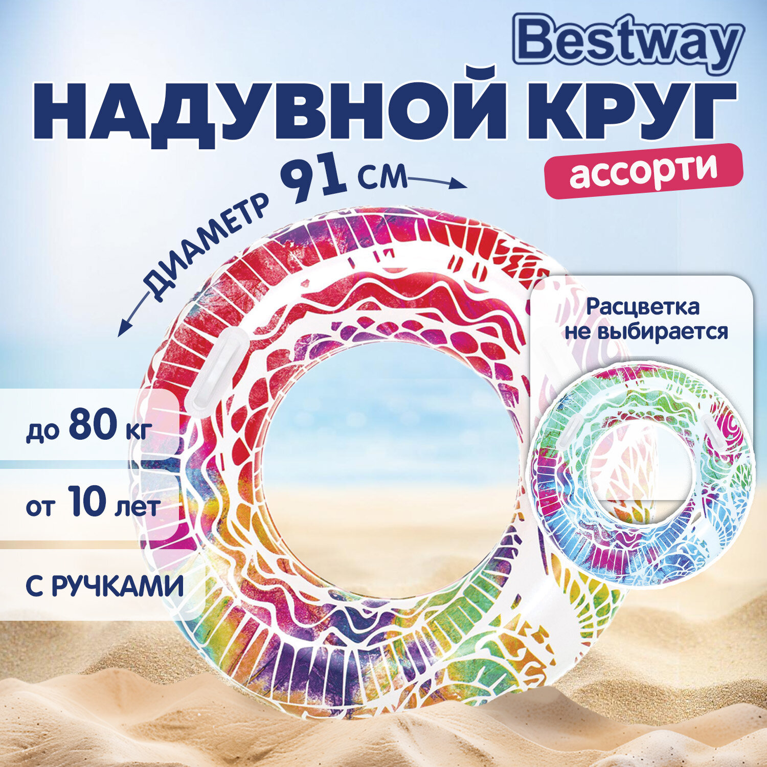 - Надувной круг для плавания "Лето" диаметр 91 см, от 10 лет, до 80 кг, АССОРТИ, BESTWAY, 36084