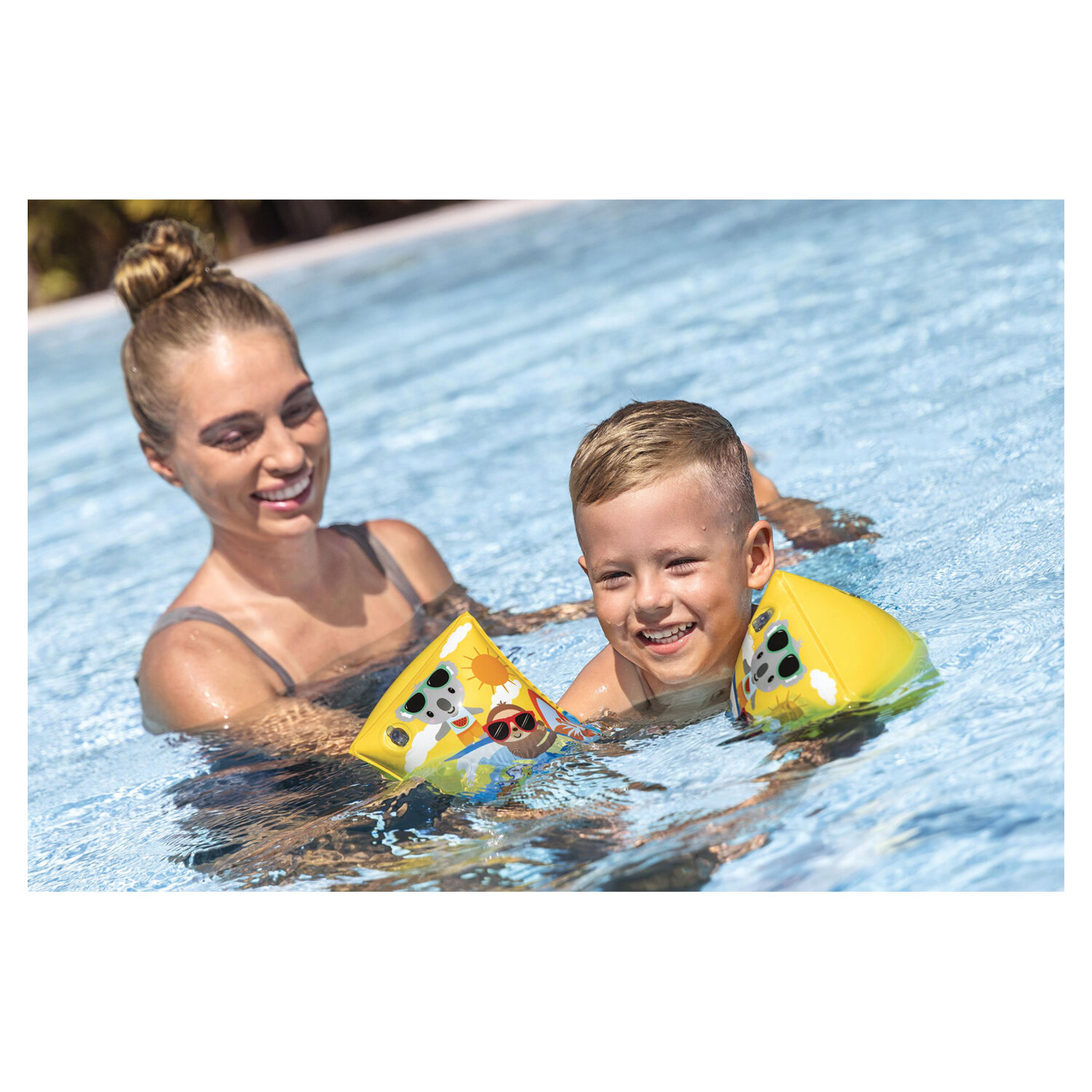 В комплект входит: 1 пара нарукавников. Нарукавники для плавания "Серфинг" 23х15 см, 3-6 лет, АССОРТИ, BESTWAY, 32042