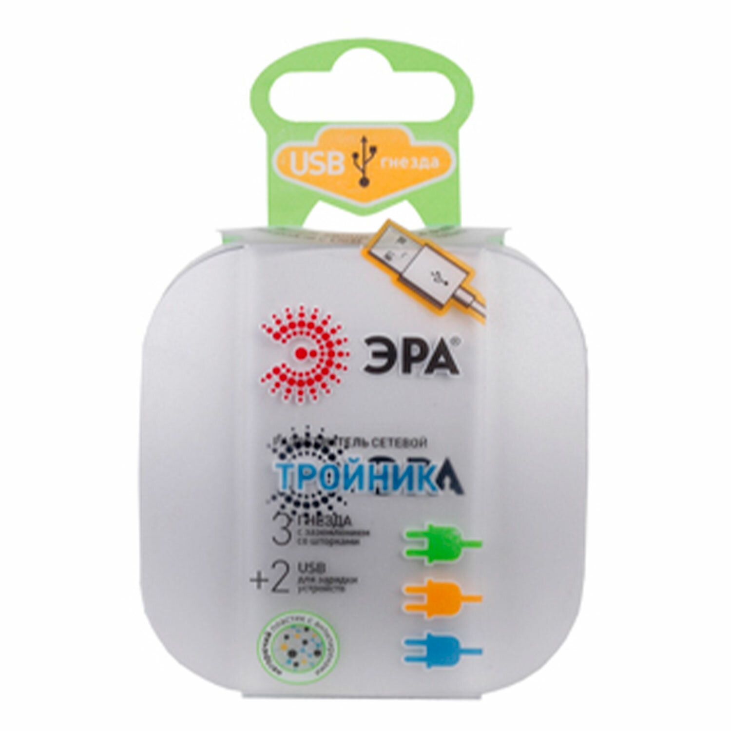 - Сетевой разветвитель ЭРА SP-3e 3 розетки + 2 USB, с заземлением, со шторками, 16 А, белый, SP-3e-USB-2A