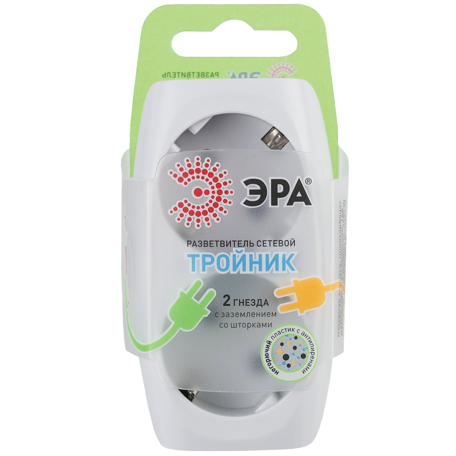 Тройник позволяет использовать одну электрическую розетку для подключения нескольких электрических приборов с заземлением. Сетевой тройник ЭРА, 2 розетки, с заземлением, со шторками, белый, SP-2e-W
