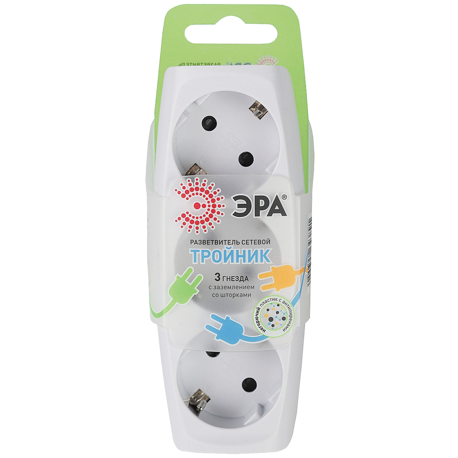 Тройник позволяет использовать одну электрическую розетку для подключения нескольких устройств. Сетевой тройник ЭРА, 3 розетки, c заземлением, со шторками, белый, SP-3e-W