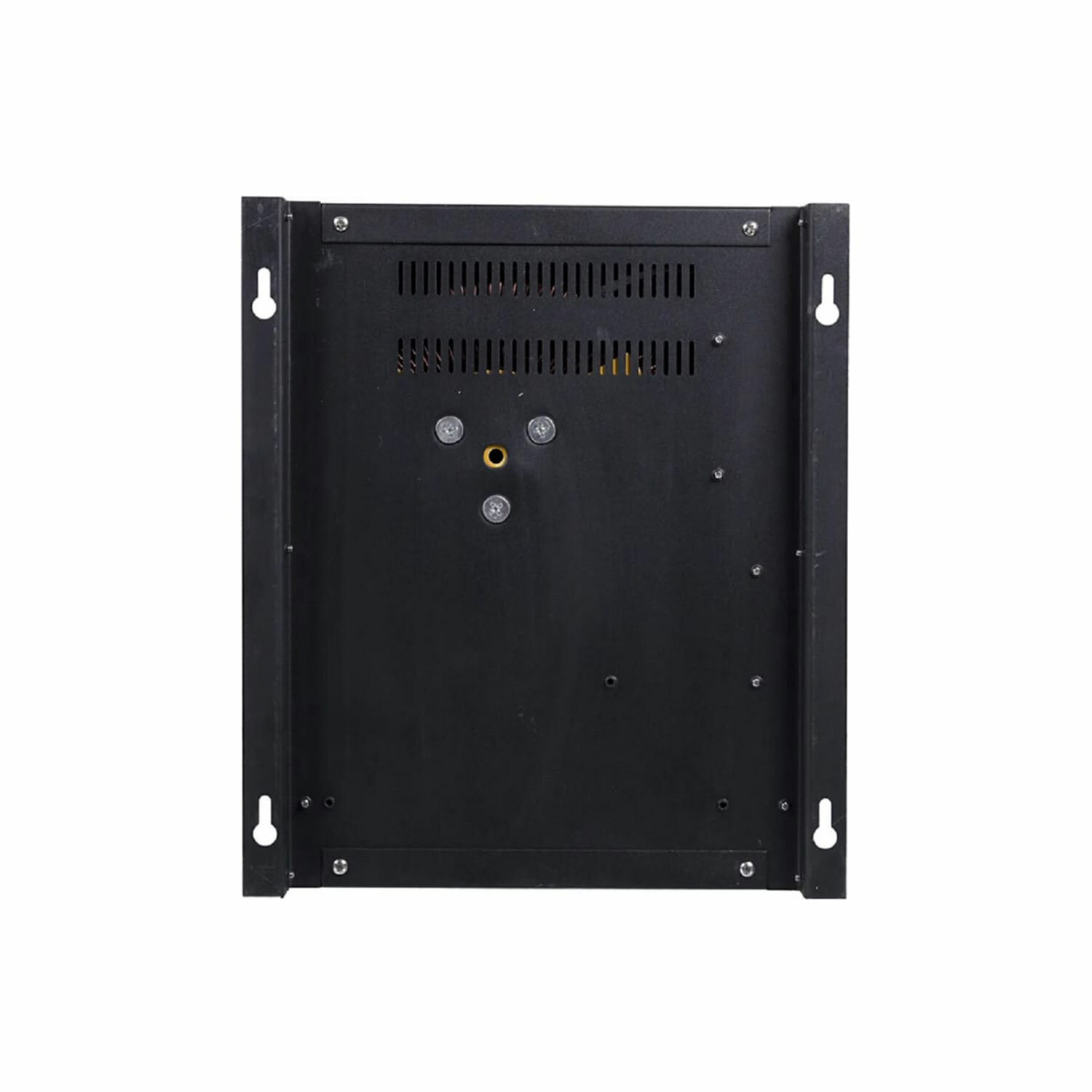 Корпус с защитой IP20 выполнен из металла, окрашенного в черный цвет. На переднюю панель выведены клеммный блок, кнопки включения и байпас, цифровой дисплей. На дисплее отображается входное и выходное напряжение, уровень нагрузки и индикаторы режима работы. Они информируют о понижении и повышении напряжения, перегрузке и перегреве. При срабатывании защиты стабилизатор напряжения прекращает подачу электроэнергии, а при нормализации параметров сети автоматически включается.