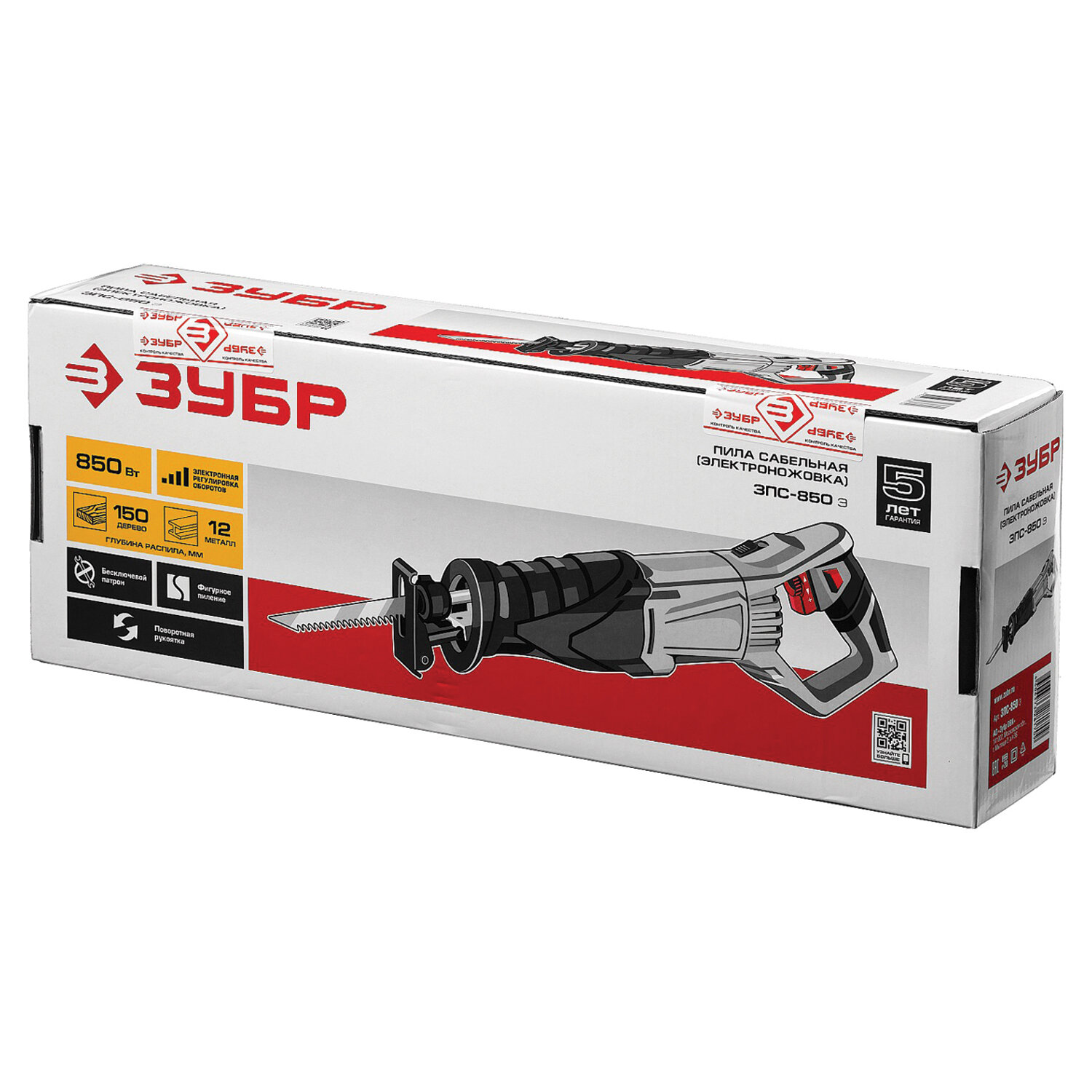 - Пила сабельная сетевая, 850 Вт, 2800 ход/мин, глубина реза до 150 мм, ЗУБР ЗПС-850 Э