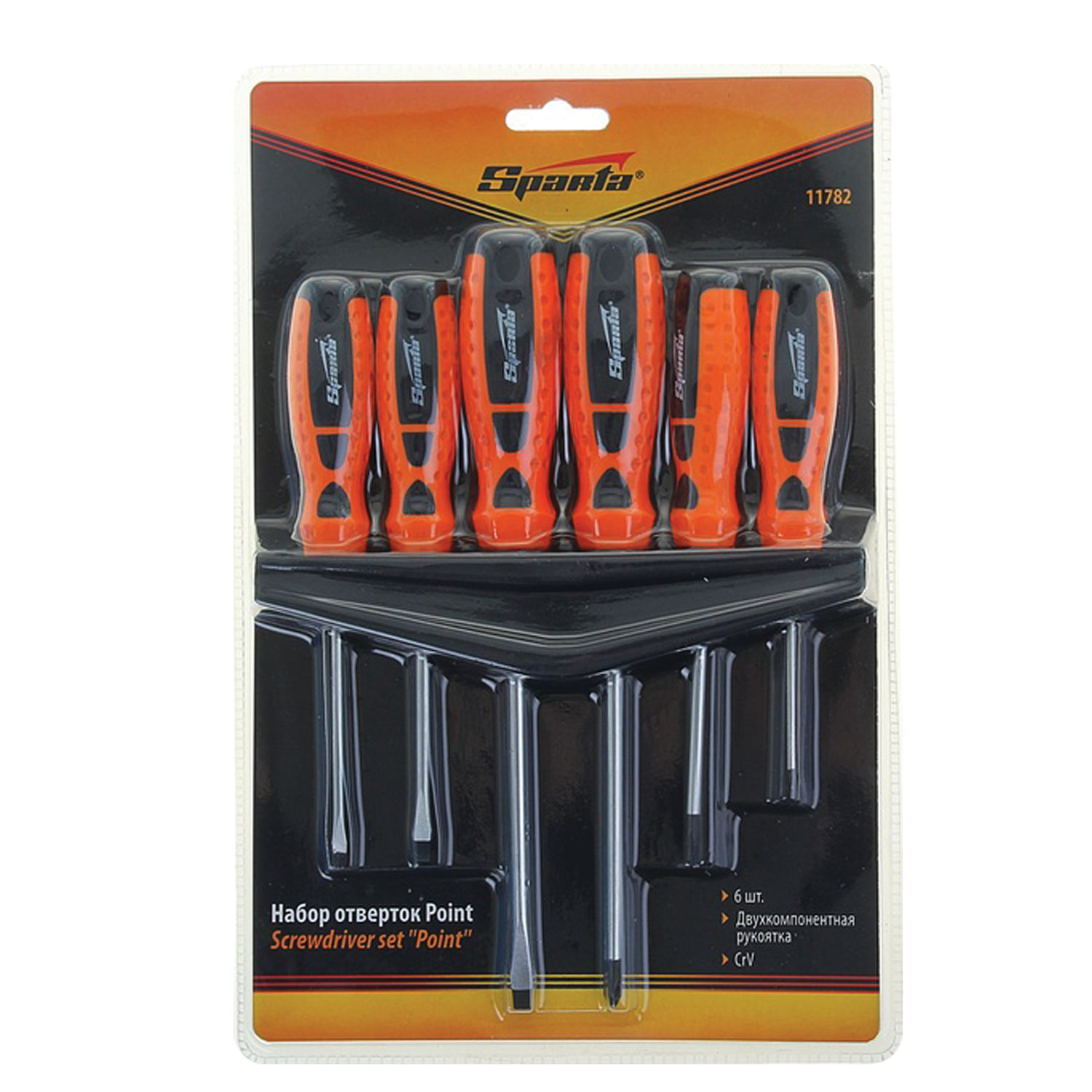 - Набор отверток SL/Ph, 6 шт., SPARTA Point, CrV, двухкомпонентные рукояти, пластиковый футляр, 11782