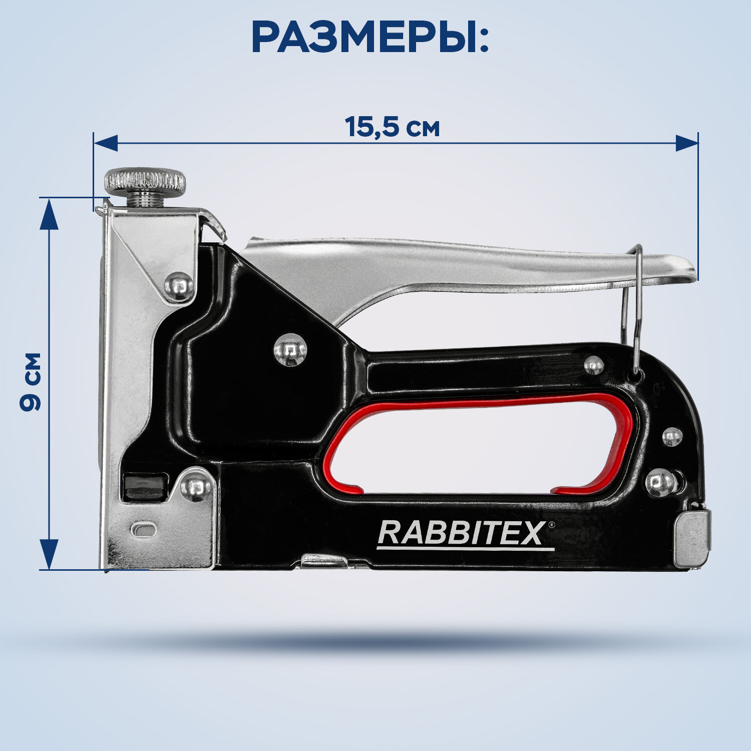 - Степлер мебельный стальной регулируемый, тип скобы 53, высота скоб 4-14 мм, 200 скоб 8 мм в комплекте, RABBITEX, 671323