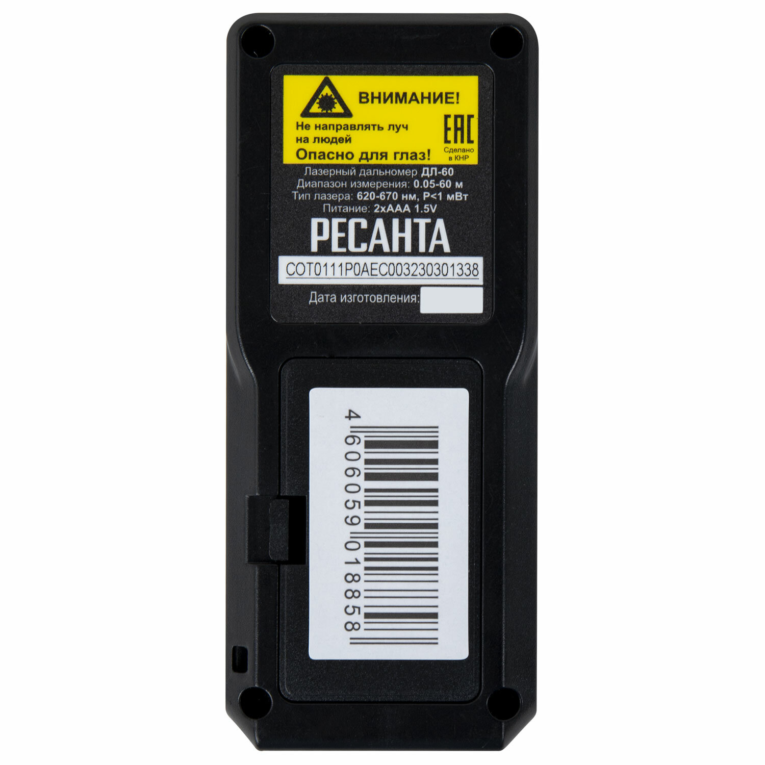 - Дальномер лазерный, диапазон измерения от 0,05 м до 60 м, РЕСАНТА ДЛ-60, 61/10/516
