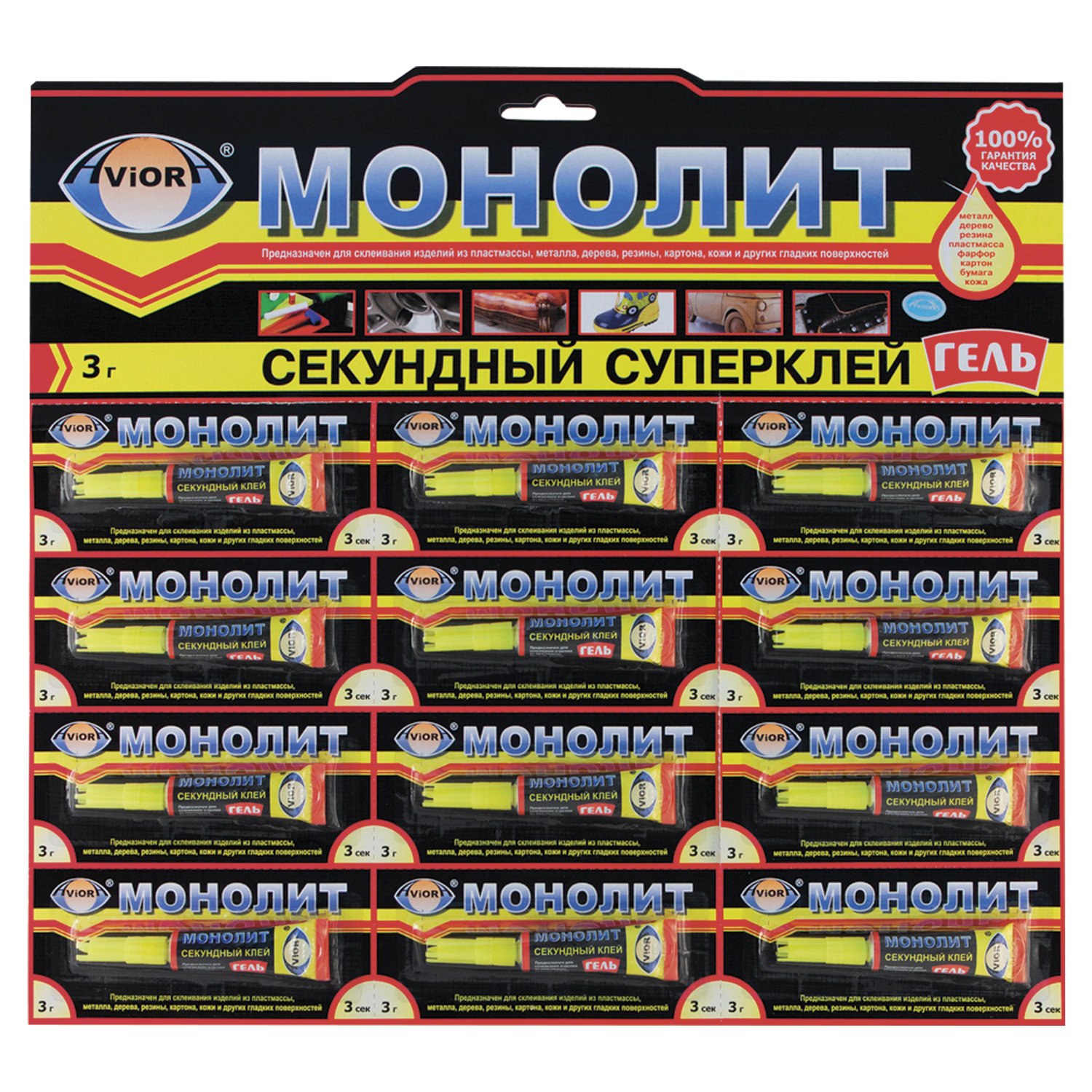 - Клей-гель моментальный МОНОЛИТ, 3 г, отрывная мультикарта, 403-202