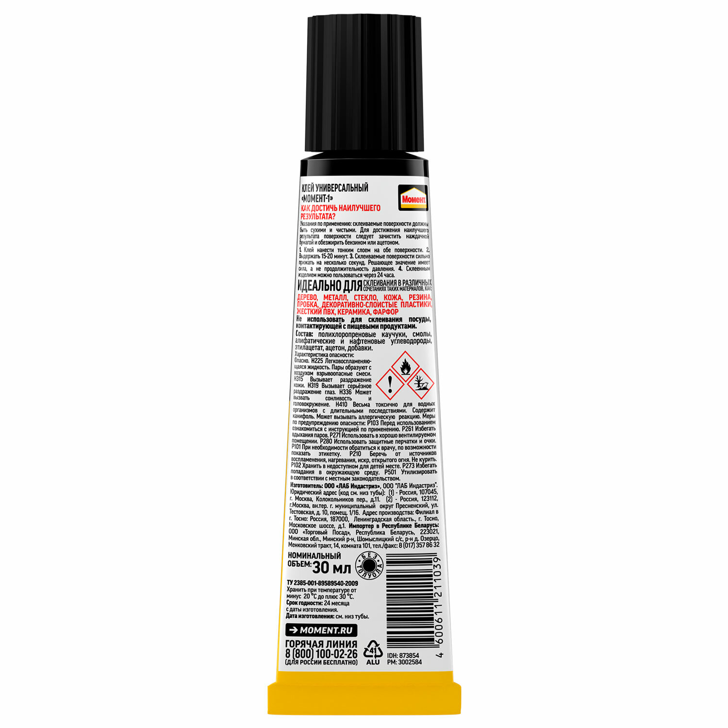 Срок годности — 24 месяца. Клей универсальный МОМЕНТ-1, 30 мл, в шоу-боксе, 873854