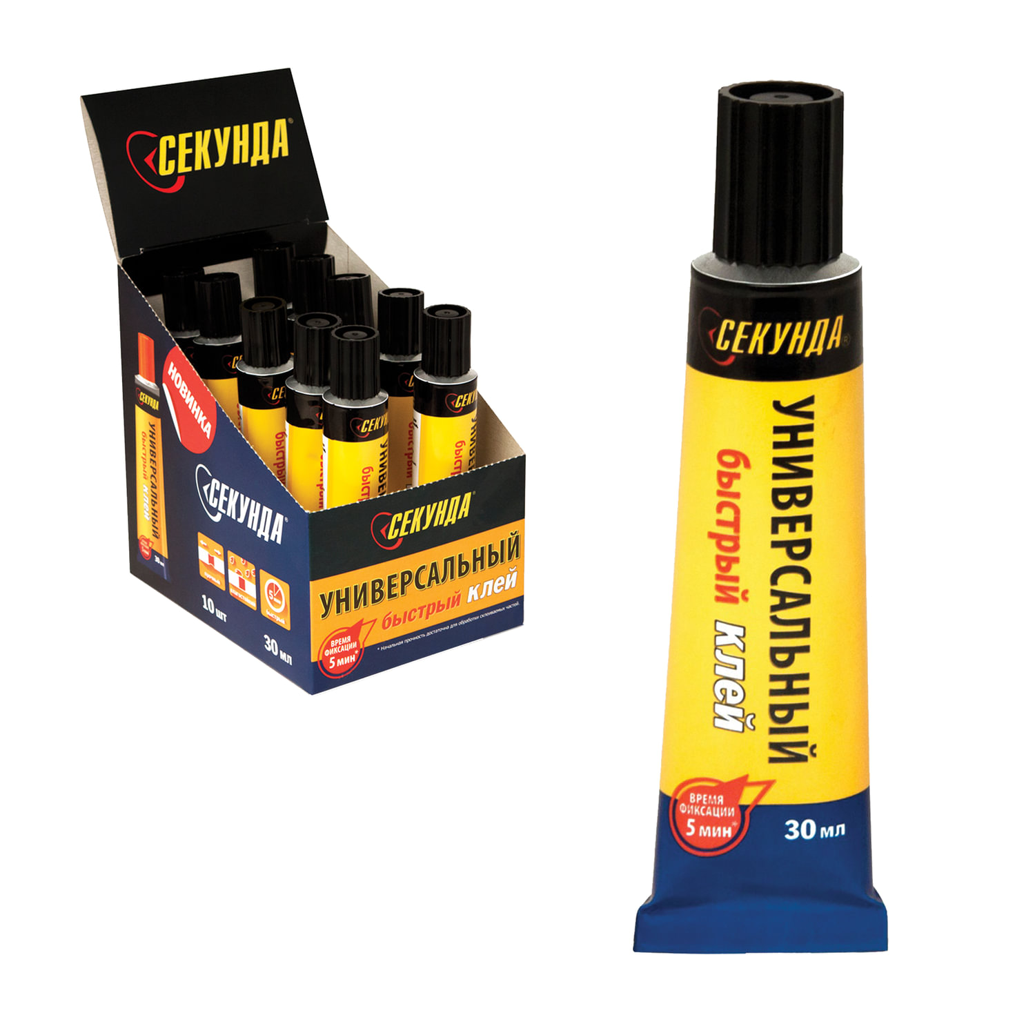 - Клей универсальный СЕКУНДА "5 МИНУТ", 30 мл, в шоу-боксе, 403-197